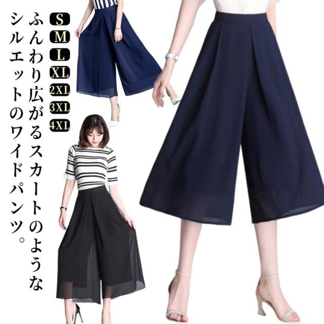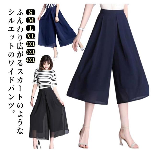 透け感 七分丈 スカート見え パンツ ワイドパンツ 九分丈 サーカスパンツ コクーンパンツ 光沢感 無地 縦長ライン タックパンツ スカーチョ ワイドパンツ 体系カバー 大人カジュアル サマーパンツ 透け感 お洒落 大人可愛い トレンド