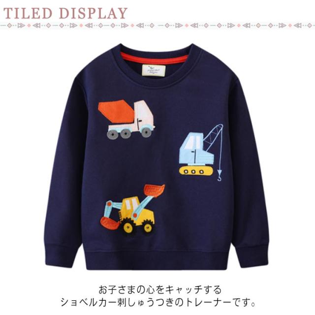 ショベルカー トレーナー スウェット コットン 男の子 キッズ トップス 冬 綿 刺しゅう 刺繍 働く車 建設車両 子供服 ボーイズ カジュアル 春 秋 キッズ かわいい