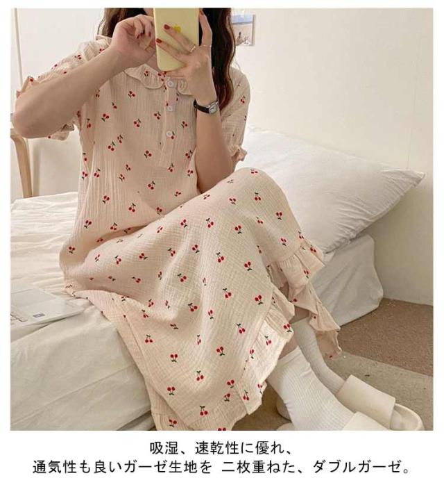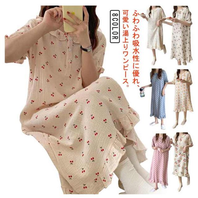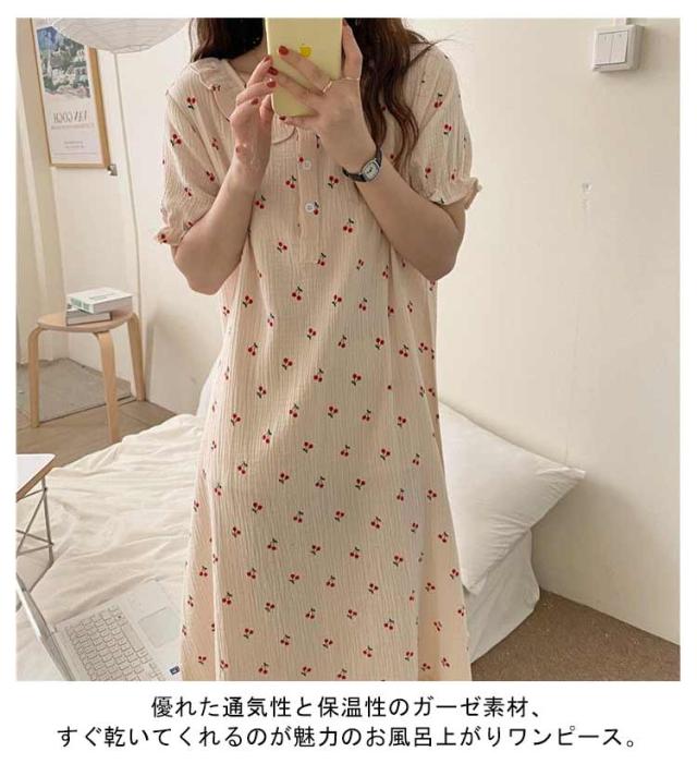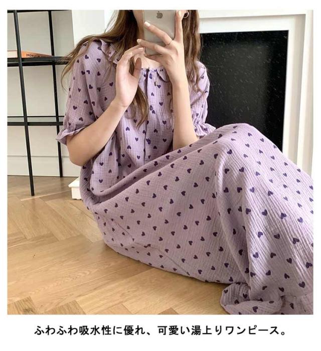 湯上りワンピ ワンピース お風呂上り レディース パジャマ 2重ガーゼ ルームワンピース リラックス 吸水 ウェア コットン 綿 ワンピース 着るタオル ネグリジェ 部屋着 湯上がりガーゼワンピース 可愛い フリル