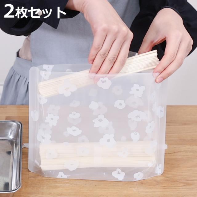 保存袋 イージーシーリング フードストック そば・うどん用 ( 乾麺 密閉 密封 マチあり エニーロック 食品 保存 そば うどん 素麺 ストッカー 中が見える 乾麺ストッカー 自立 収納 2枚入 便利 )