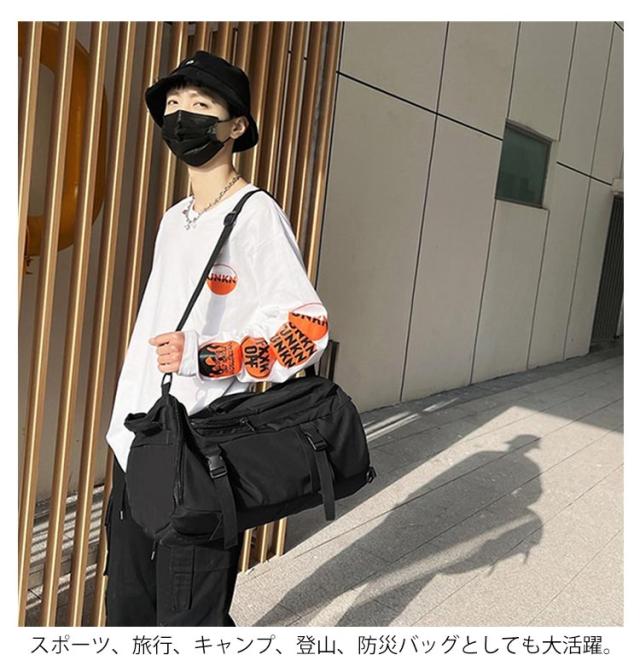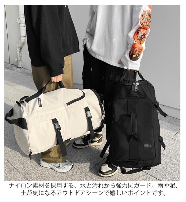 | 旅行やスポーツ、ジムなどにおすすめの3WAY仕様ボストンバッグ ナイロン素材を採用する、水と汚れから強力にガード。雨や泥、土が気になるアウトドアシーンで嬉しいポイントです。 背負ったり、肩にかけたり、手で持ったりできる、リュック、ショルダーバッグ、ボストンバッグの3WAY仕様。 たくさんのポケットがあるため細かく収納を分けてお使いいただけます。また、乾湿分離ポケットがついているため、濡れたタオルなどを入れるのにも便利です 場所や重さで自由持ち方を選べるため、楽に荷物が運べます スポーツ、旅行、キャンプ、登山、防災バッグとしても大活躍。 男性にも女性にもにも使いやすいユニセックスデザインのもうれしいポイント。 | |