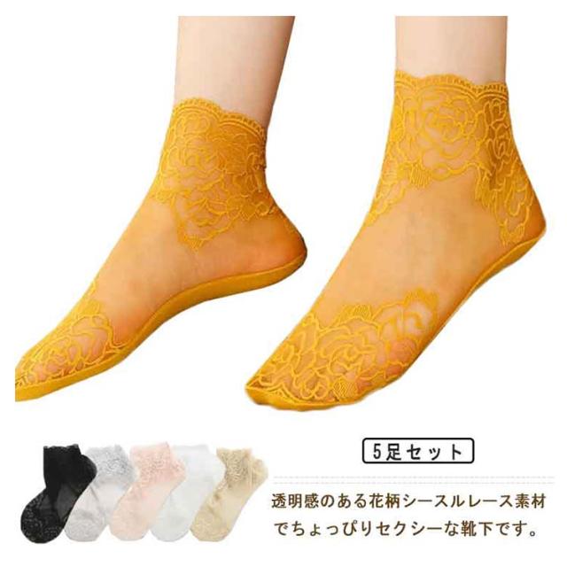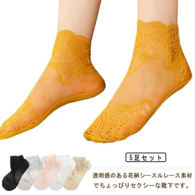 レース ソックス 5足セット レース靴下 ショートソックス レディース シースルー シアー 花柄 レース 脱げにくい フットカバー ソックス 靴下 インナーソックス フェミニン 可愛い ショートソックス シアー 通気性 エレガンス 母の日
