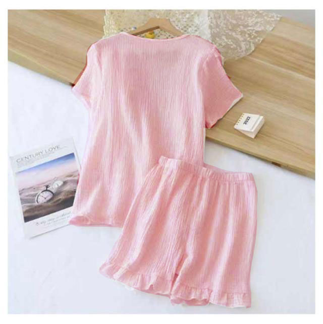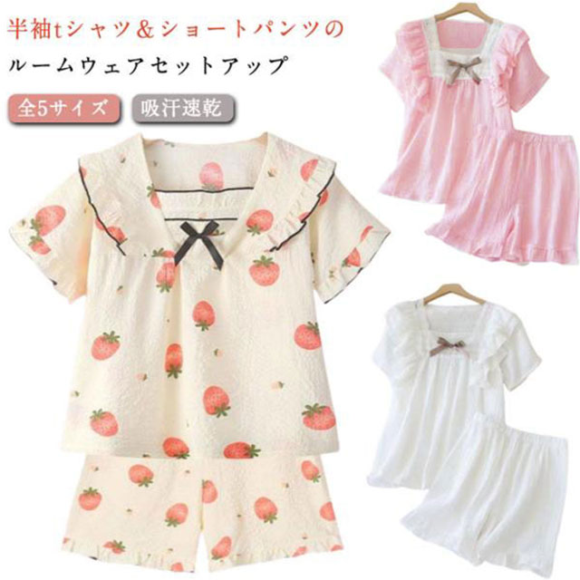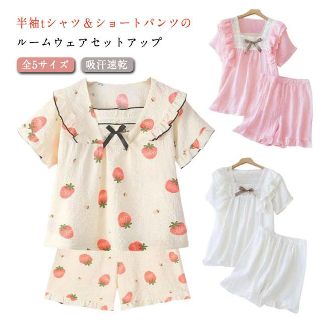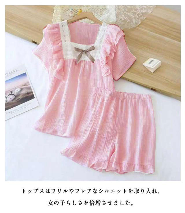 | 半袖tシャツ&ショートパンツのルームウェアセットアップ 柔らかく薄手の生地、風通しがよくしっかり汗も吸収。さらっとした肌触りをキープできます。 トップスはフリルやフレアなシルエットを取り入れ、女の子らしさを倍増させました。 ネックラインにレース、胸元のリボンと、ときめくガーリーディテールがいっぱい! お部屋でもおしゃれを楽しめるガールズフリル半袖パジャマセット。 | |