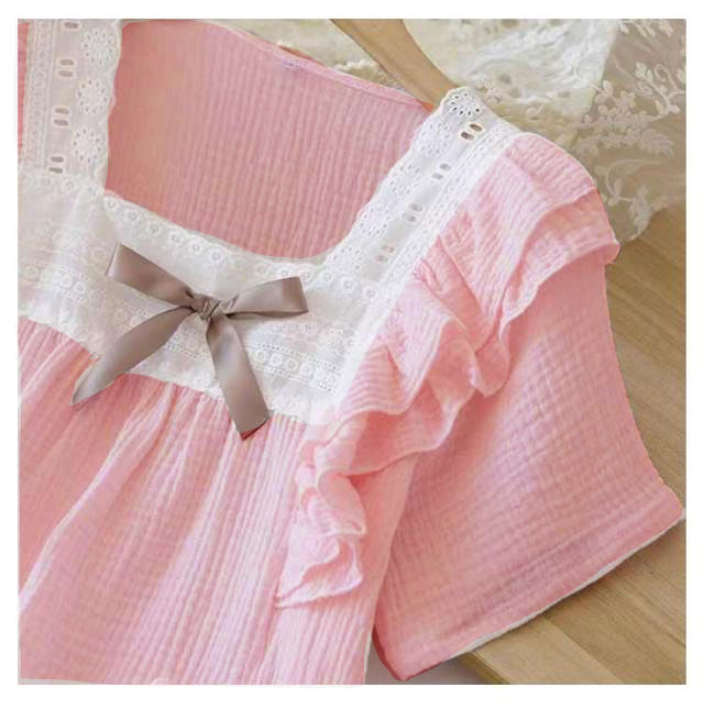 女の子 パジャマ 上下セット ショートパンツ レース フリル 可愛い 部屋着 セットアップ 半袖 リボン かわいい パンツ レース リボン キッズ ガールズ 部屋着 寝間着 ルームウェア 女の子 薄手 吸汗速乾 通気性 春 夏 快適 ギフト プレゼント 送料無料
