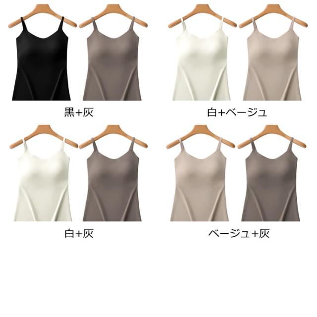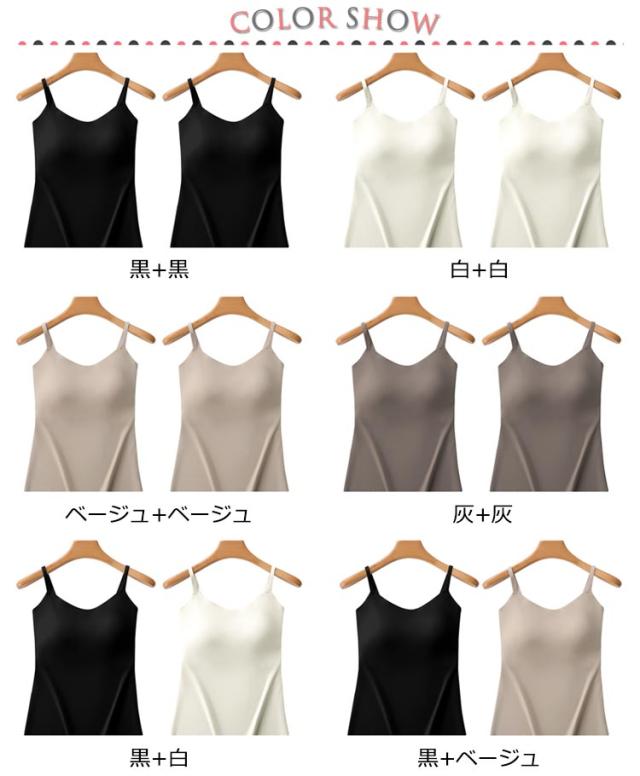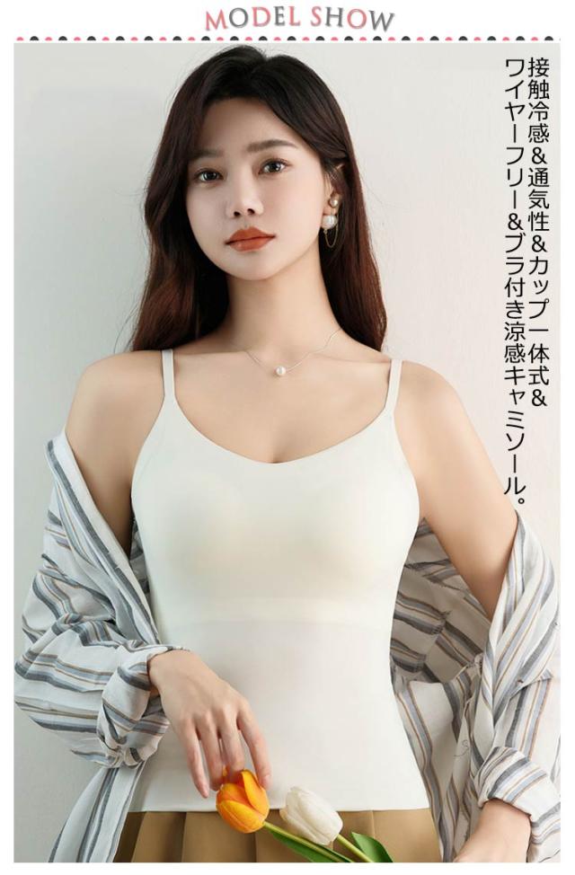 | 2枚入り ブラ付き涼感キャミソール 接触冷感&通気性&カップ一体式&ワイヤーフリー&ブラ付き涼感キャミソール シースルーのシャツやトップスに大活用できるトップス。 デコルテを美しく演出するvネックラインでベルシーな着こなしを叶える ご自宅でも過ごしやすい着心地の良いタンクトップは 必ず一枚は持っておきたい今シーズンのスマートアイテムです。 ストレッチマッサージ立体型カップは自然に胸を包み込みます。 | |