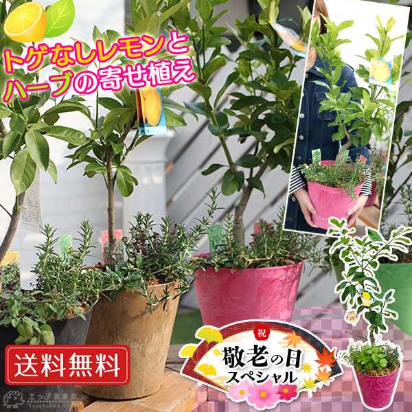 【 敬老の日 】トゲなしレモンとハーブの寄せ植え (送料無料、フクロウピック付き)おじいちゃん おばあちゃん と楽しい思い出をプレゼントしませんか 敬老の日 果樹 収穫 苗 子供 孫 から ギフト 敬老の日プレゼント 贈り物 送料無料 土っ子倶楽部