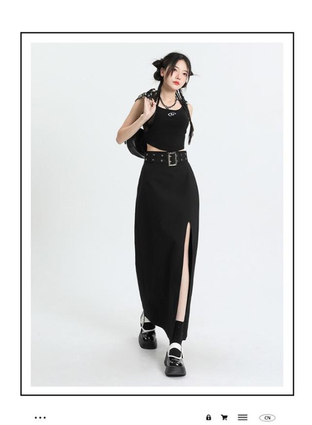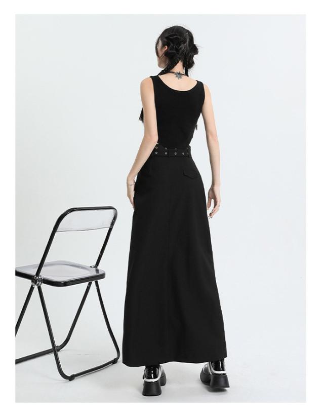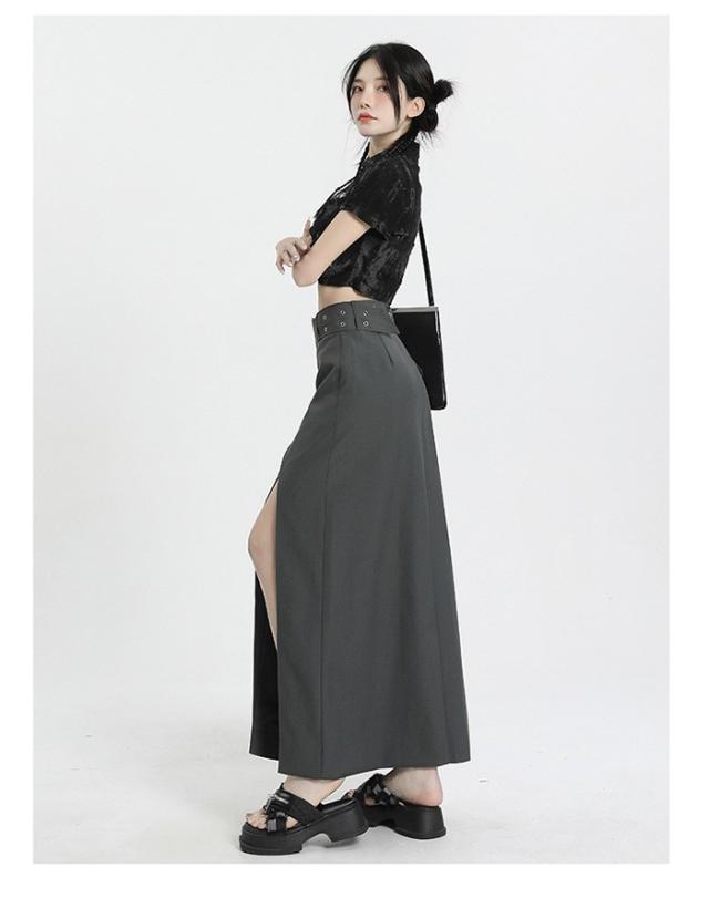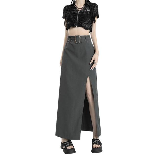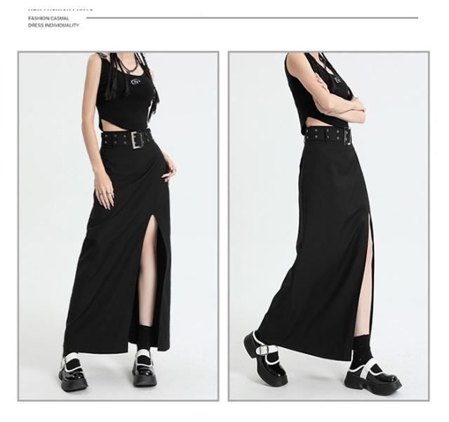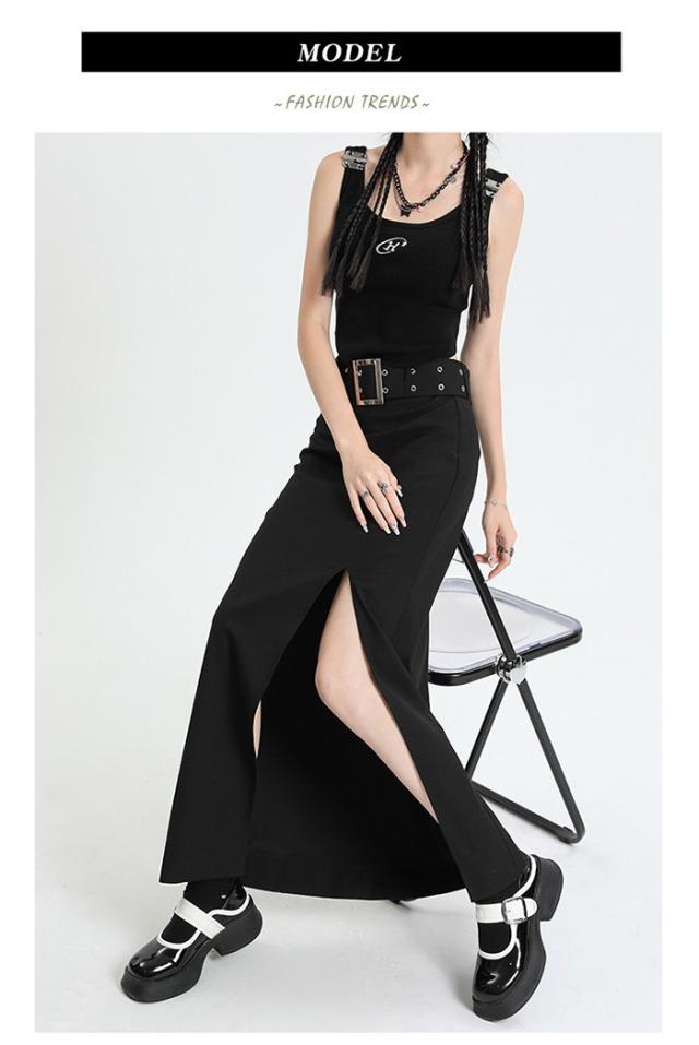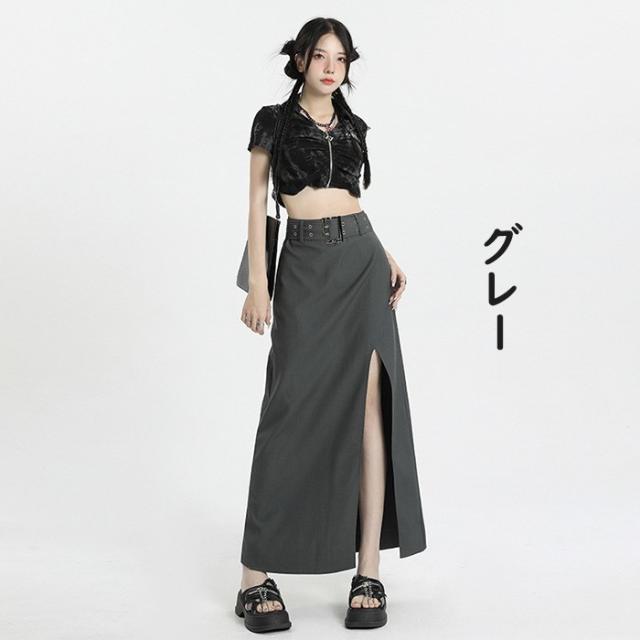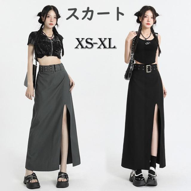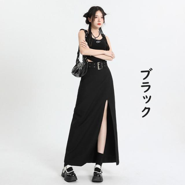 スカート ハイウエスト ロング丈 レディース セクシー Aライン ゆったり 通学 学生 ジュニア ロングスカート ブラック グレー dd025lclclc