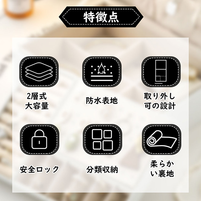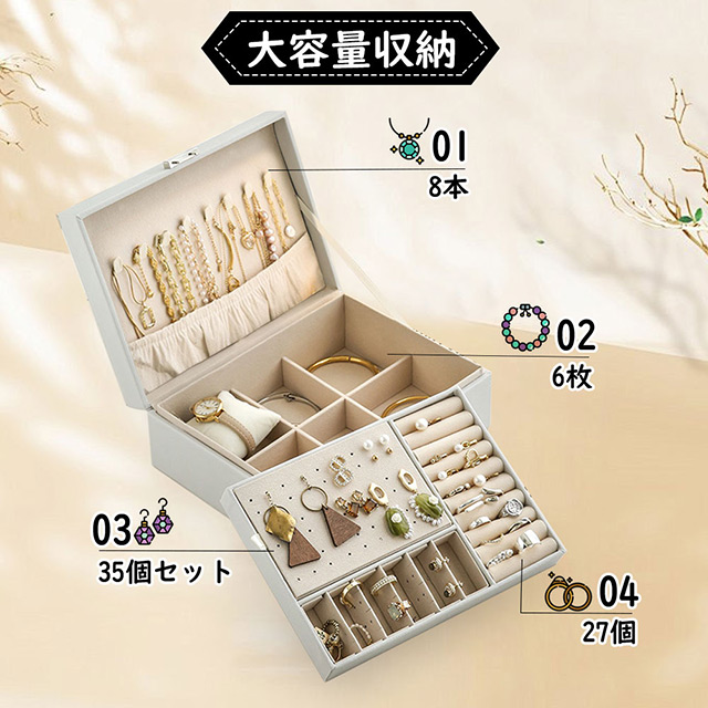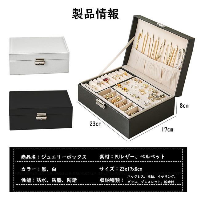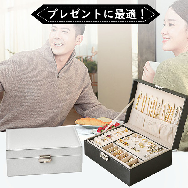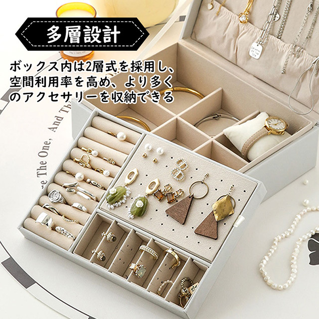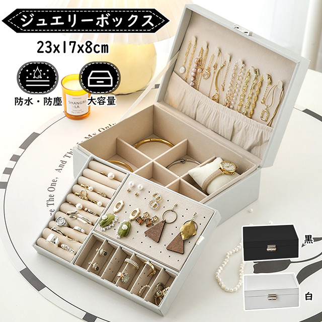 「クーポン配布中」2段 ジュエリーボックス レザー ジュエリーケース アクセサリーボックス アクセサリーケース 大容量 ジュエリー収納 アクセサリー 収納 アクセサリートレイ 宝石箱 指輪 ネックレス 収納ボックス 小物入れ 鍵付き 大容量収納 母の日 プレゼント