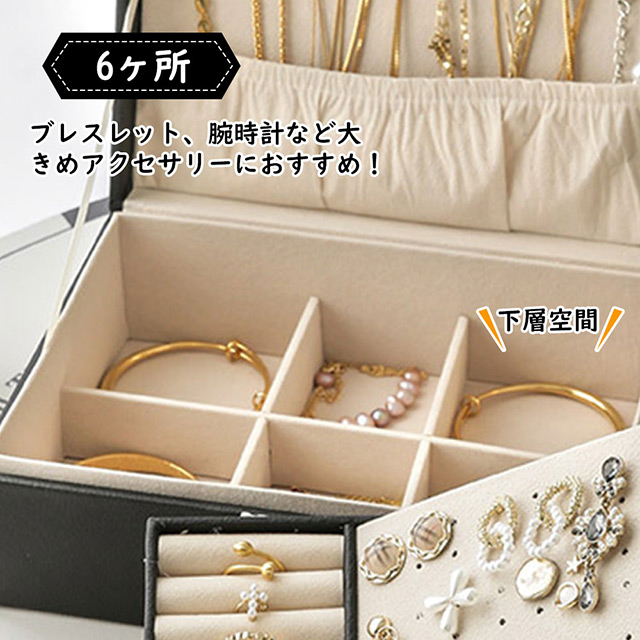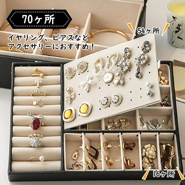 【より多いものを置ける2段のデザイン】2段構造のコンパクトな設計で、超大ストレージ容量(少なくとも116個を収納できる!)。ジュエリー・アクセサリー(ネックレス・指輪・ピアス・イヤリング・バングル・腕時計・小物)等が一つまとまって収納することができます。