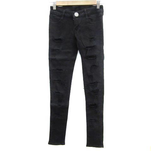 【中古】ムルーア MURUA デニムパンツ ジーンズ スキニーパンツ ロング丈 ダメージ加工 ブラック 黒 /YM12 レディース