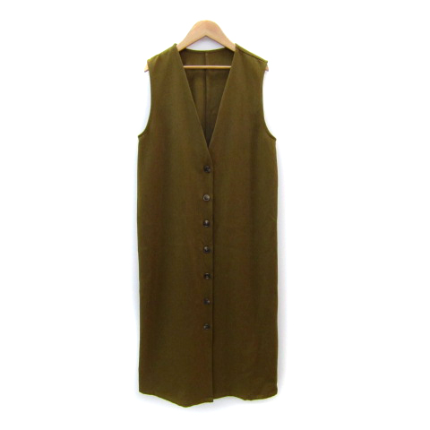 【中古】ドレスキップ DRESKIP ジャンパースカート ワンピース ロング丈 Vネック 無地 M カーキ /SY19 レディース