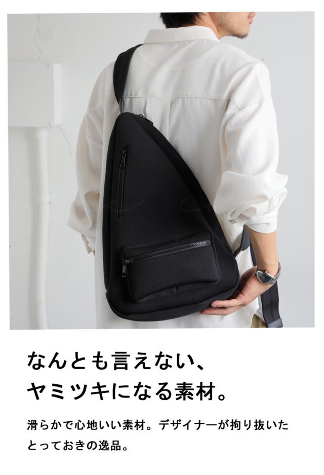 【検索ワード】ウェットスーツ素材 ショルダーバッグ バッグ メンズ 鞄 マシュマロバッグ バックパック ショルダー 肩掛け ななめ掛け 軽量 マチあり 三角形 シンプル ファスナー 内ポケット ウェットスーツ クッション素材 ソフト 柔らかい 丈夫 汚れにくい 立体ポケット 衝撃吸収 肩紐調節可 マット 黒 ブラック かばん カバン ユニセックス 男性 男 かっこいい カッコイイ カジュアル antiqua treecafe アンティカ ツリーカフェ メンズファッション トレンド コーディネート 通販 ブランド 春 夏 秋 冬 オールシーズン あんてぃか