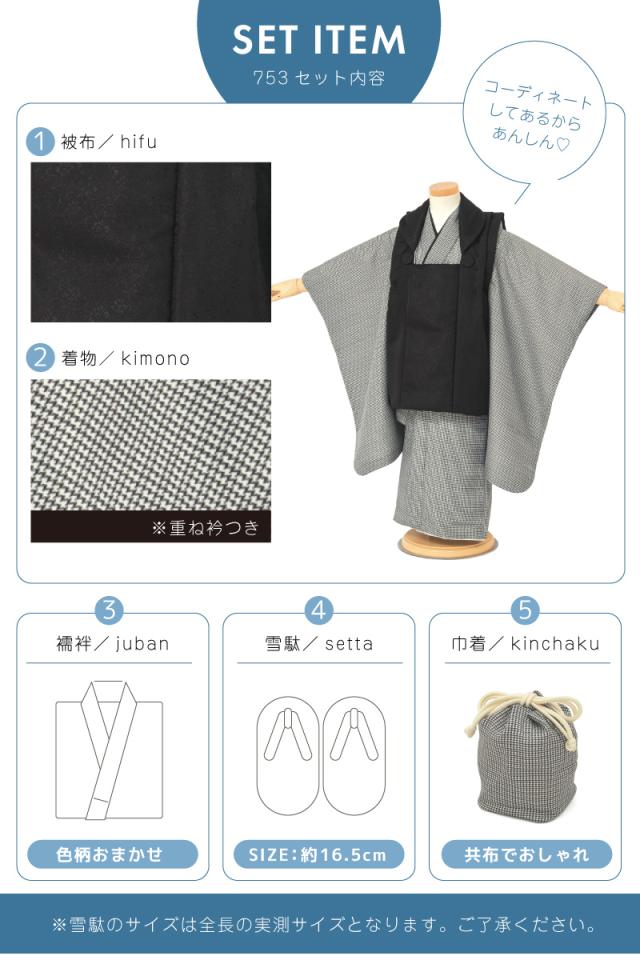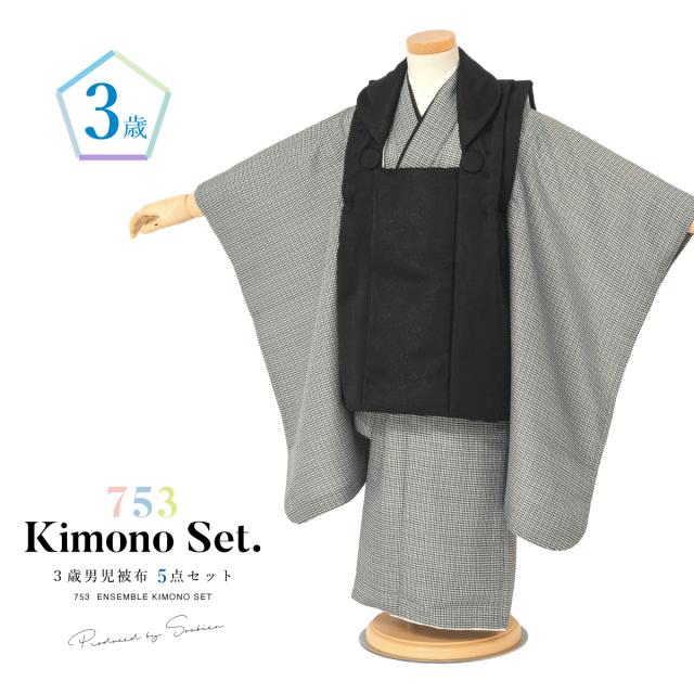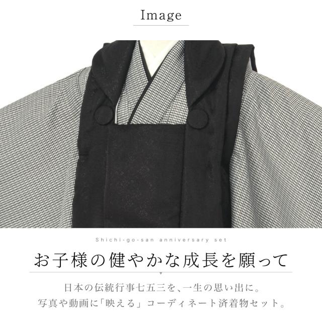 七五三 着物 3歳 レトロ 被布 販売 男の子 三歳 着物セット 被布コート 襦袢 雪駄 セット 千鳥格子 黒 白 おしゃれ 和装 男児 子供 送料無料
