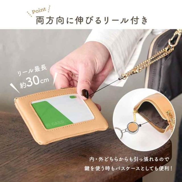 キーケース パスケース 一体型 レディース リール付き ノフェス 定期入れ スマートキー おしゃれ かわいい 大人 女性 ICカード パスポーチ 伸びる 鍵 キーホルダー 女子 高校生 大学生 シンプル 合皮 窓付き カードケース 通勤 通学 鍵入れ キャメル ブルー ピンク 紛失防止