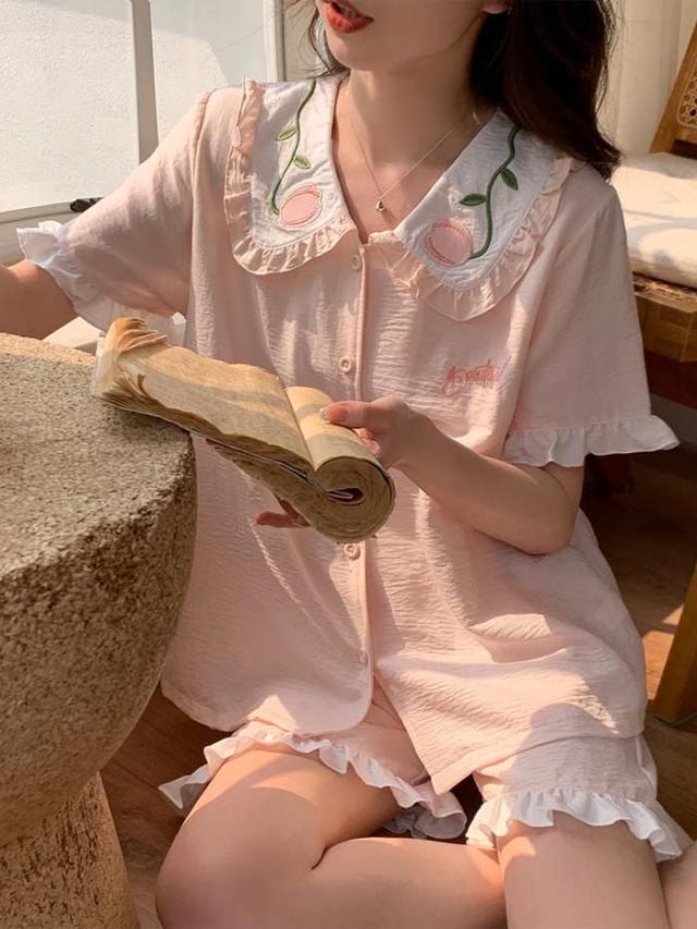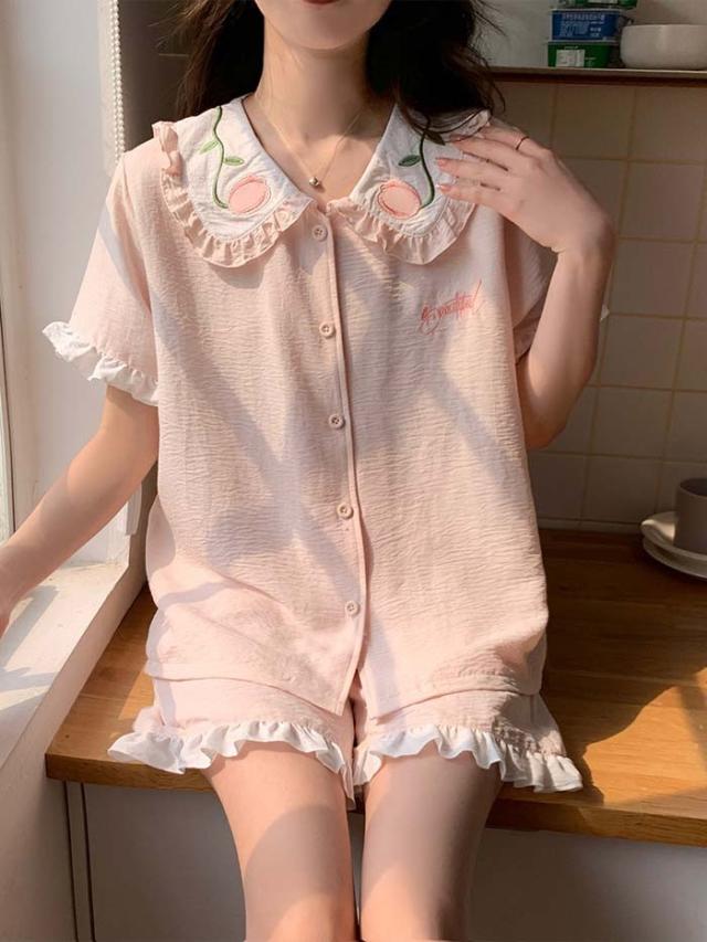 ルームウェア レディース 涼しい 上下セット 半袖 ズボン ピンク ベージュ 部屋着 前開き おしゃれ 夏 前開き 寝巻き 誕生日 プレゼント dh023m3m3lc