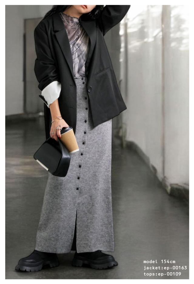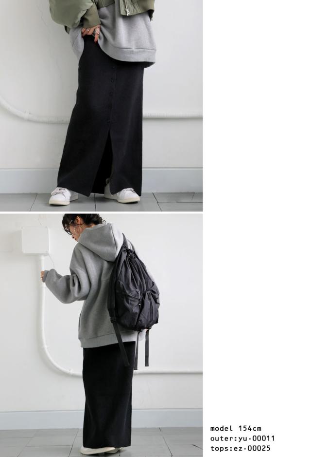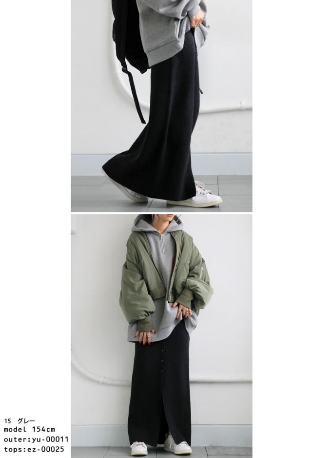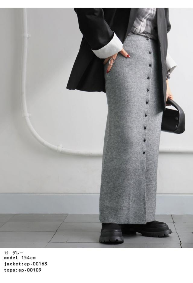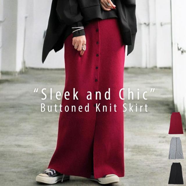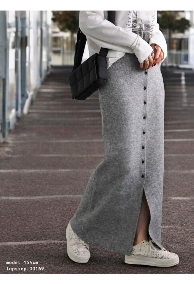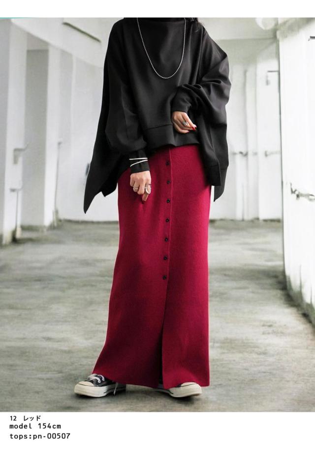 esa-00184 無地 フロントボタン ボタン開き スリット 伸縮性 コンパクトサイズ Iライン シンプル きれいめ 上品 モード スタイリッシュ 体型カバー 着痩せ ロングスカート マキシ丈