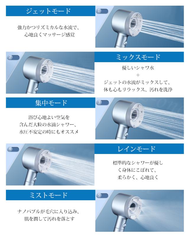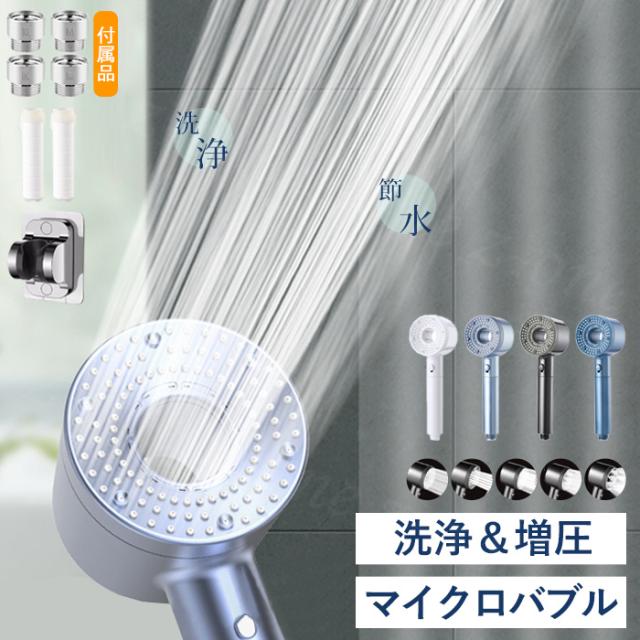 シャワーヘッド 節水 シャワーヘッド シャワー 増圧 節水シャワーヘッド 水圧アップ 水流調整 止水ボタン 極細水流 ミスト フィルター 浄水 パワー水圧 ワンプッシュ アダプター付 シャワーフック付き 5段階モード 軽量 高洗浄力 取付簡単 入学式 入園式