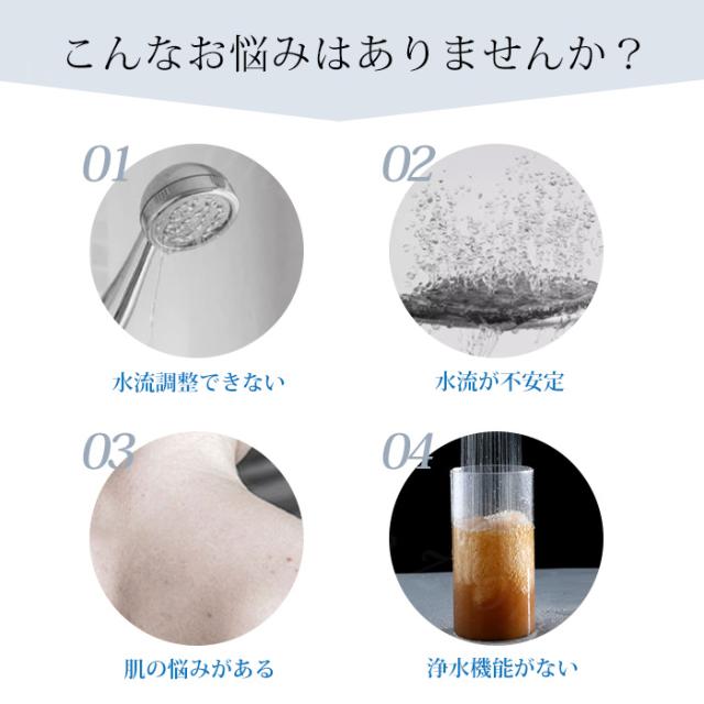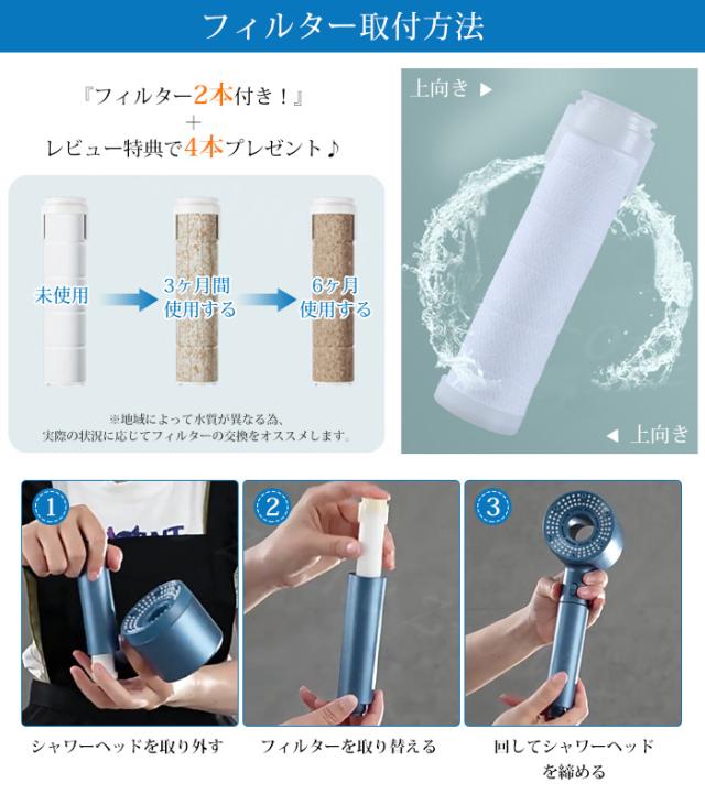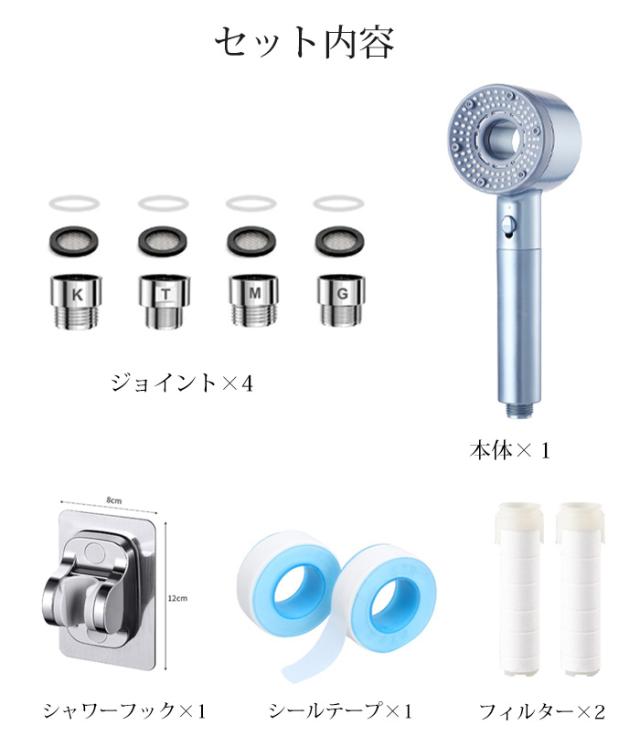 セット内容:シャワーヘッド*1、浄水フィルター*2、ジョイント*4、シャワーフック*1、シールテープ*1