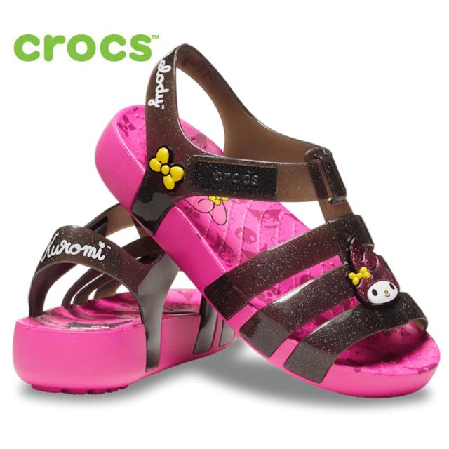 マイメロディ サンダル クロックス 女の子 crocs キッズ ハローキティ アンド フレンズ マイメロディ アンド クロミ 210114 ブラック 黒 マルチ 軽量 バックストラップ 子供靴