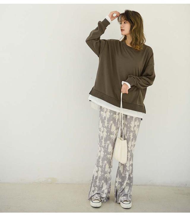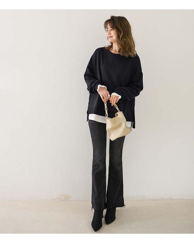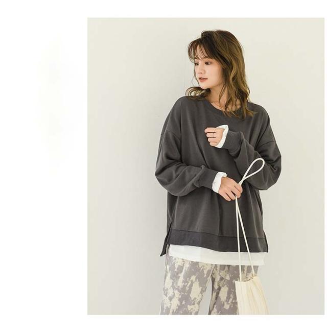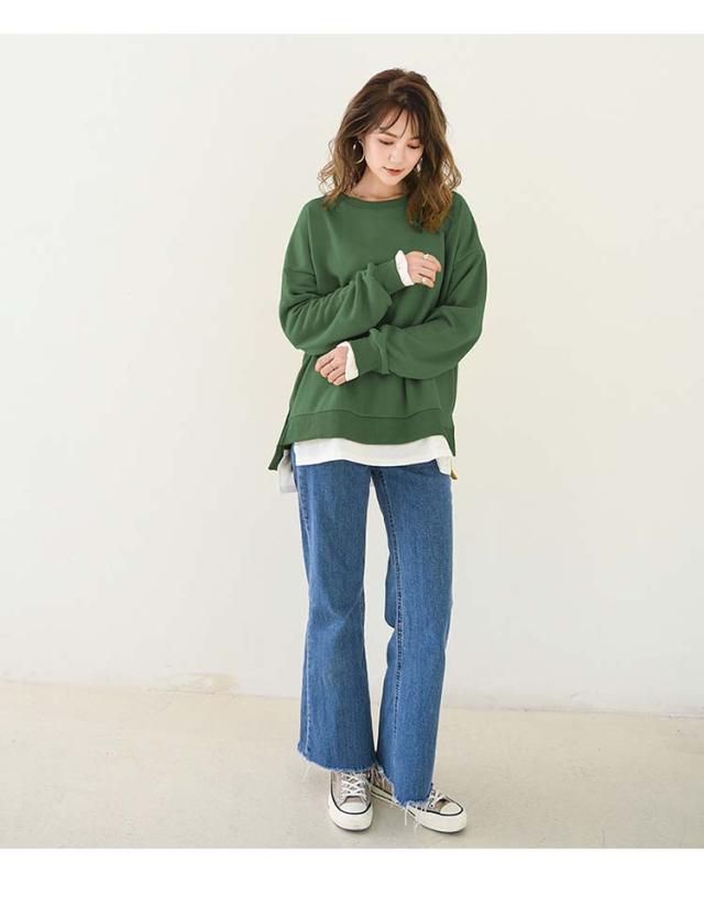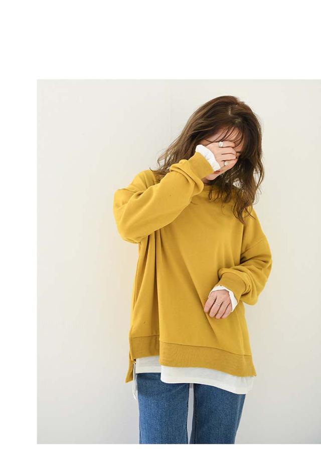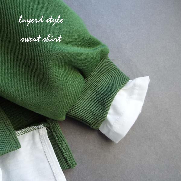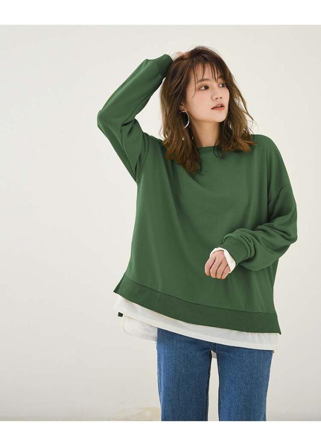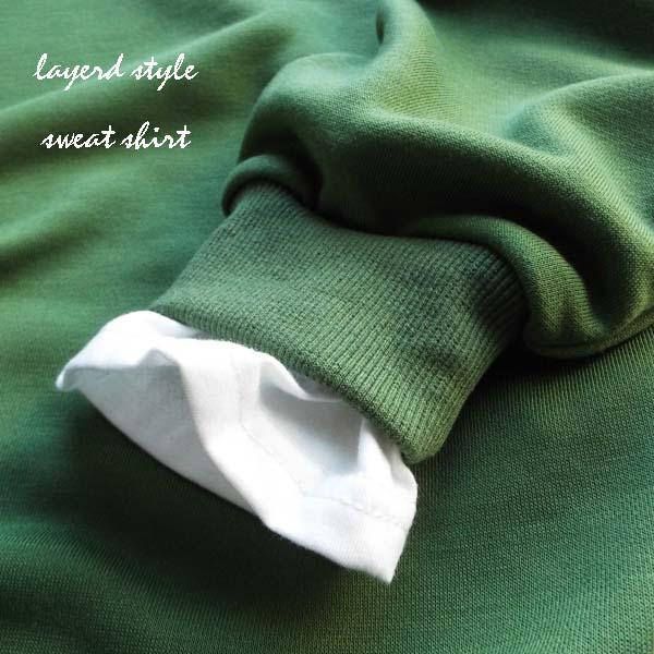 トレンド感のあるレイヤードコーデ風裏毛プルオーバー