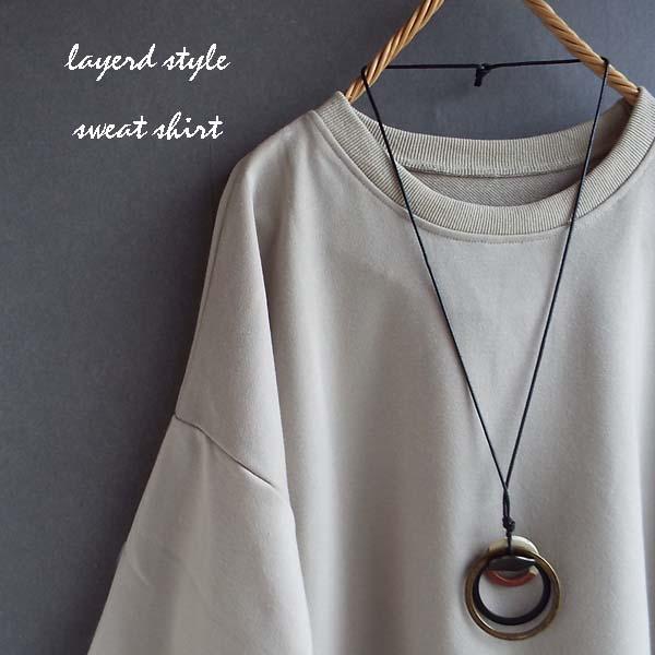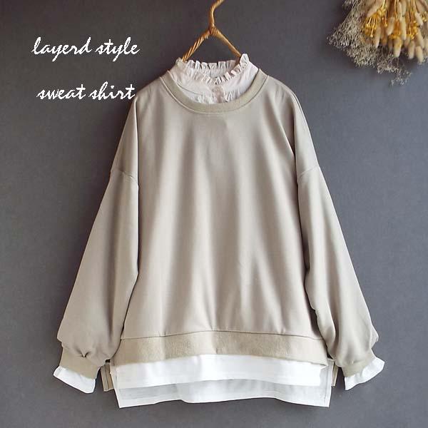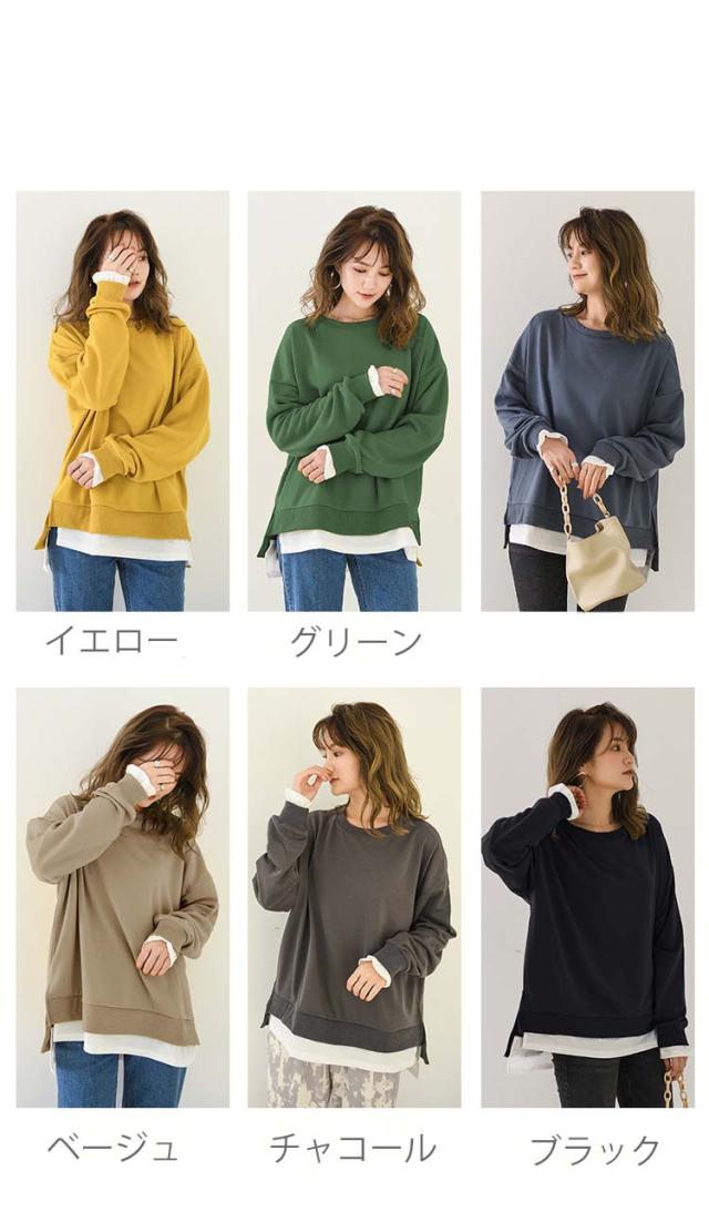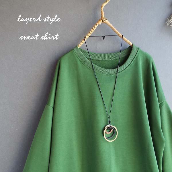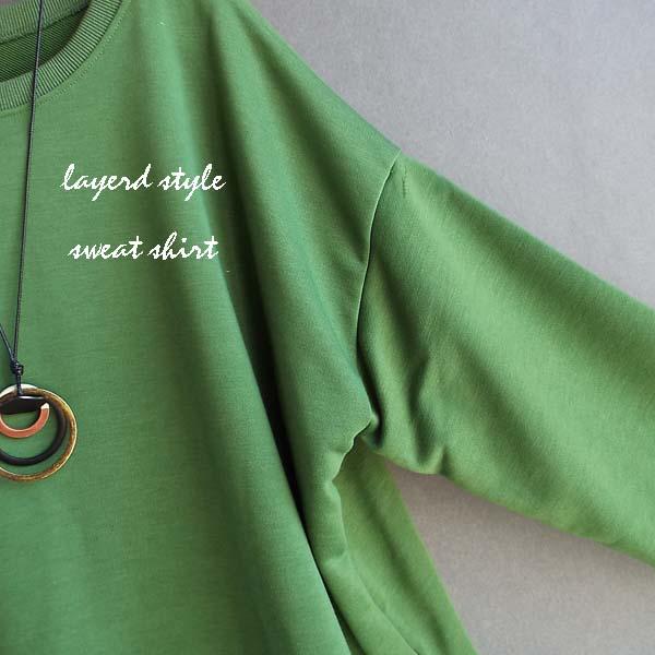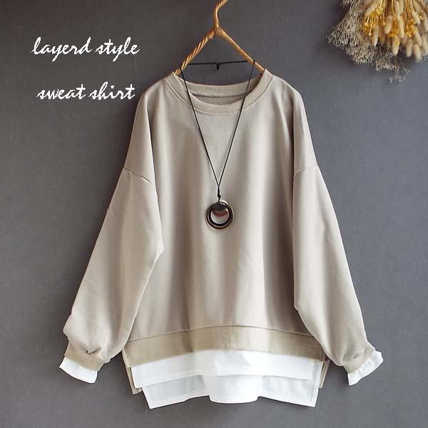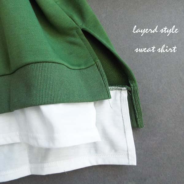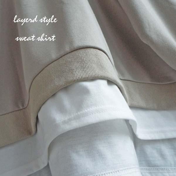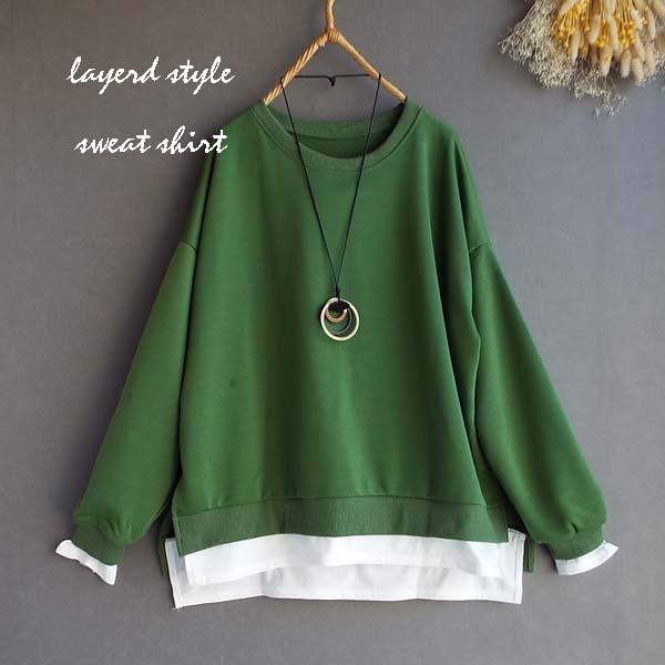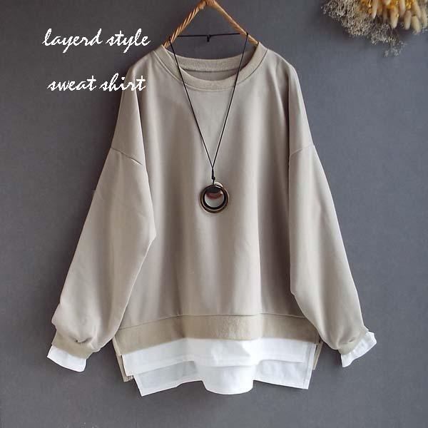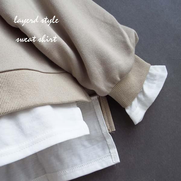 チュニック レイヤード風 裏毛 トレーナー スウェット 春夏 40代 50代 体型カバー s3657