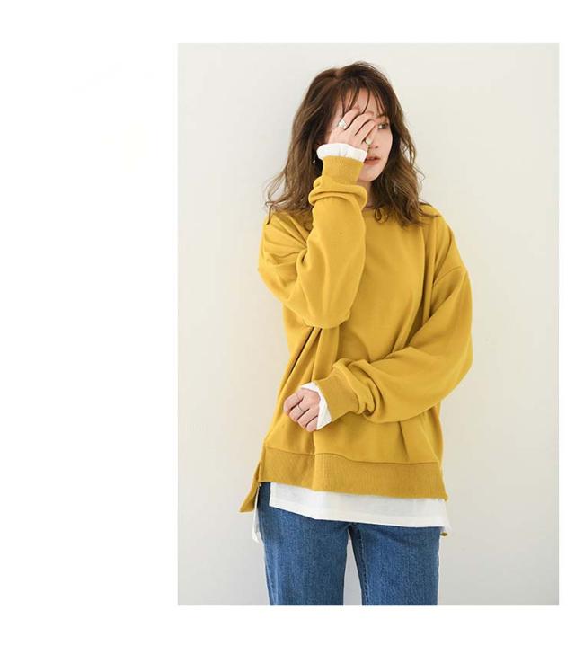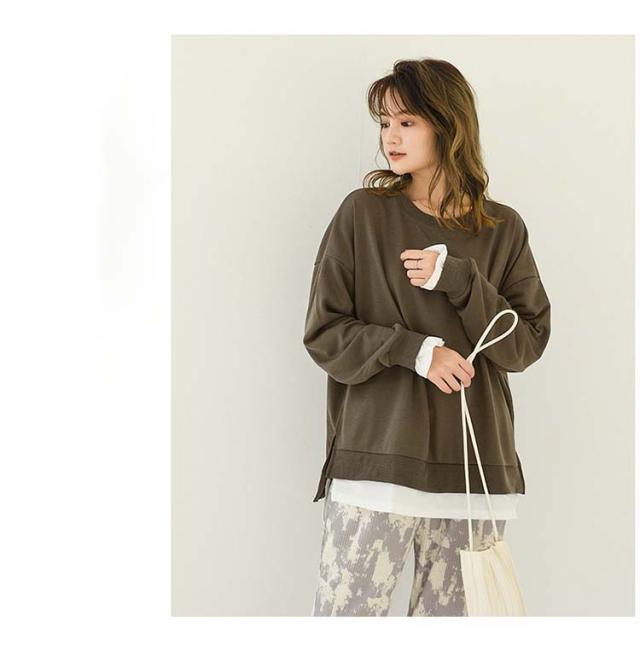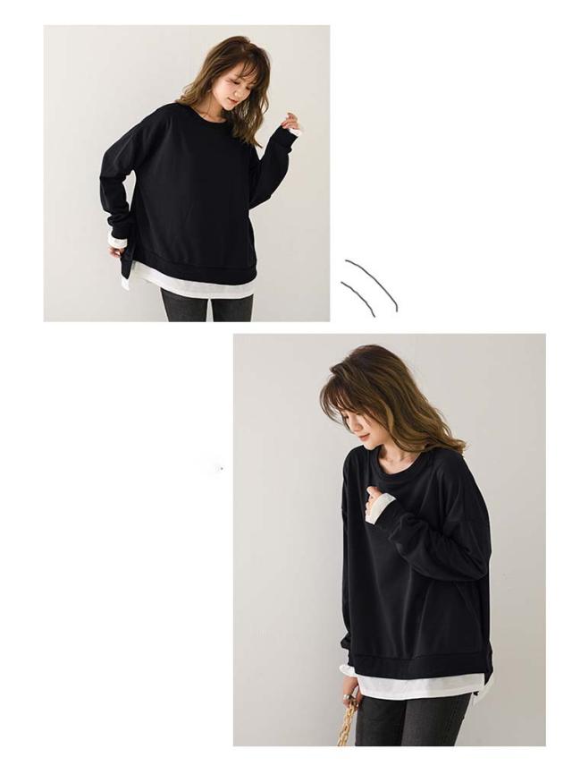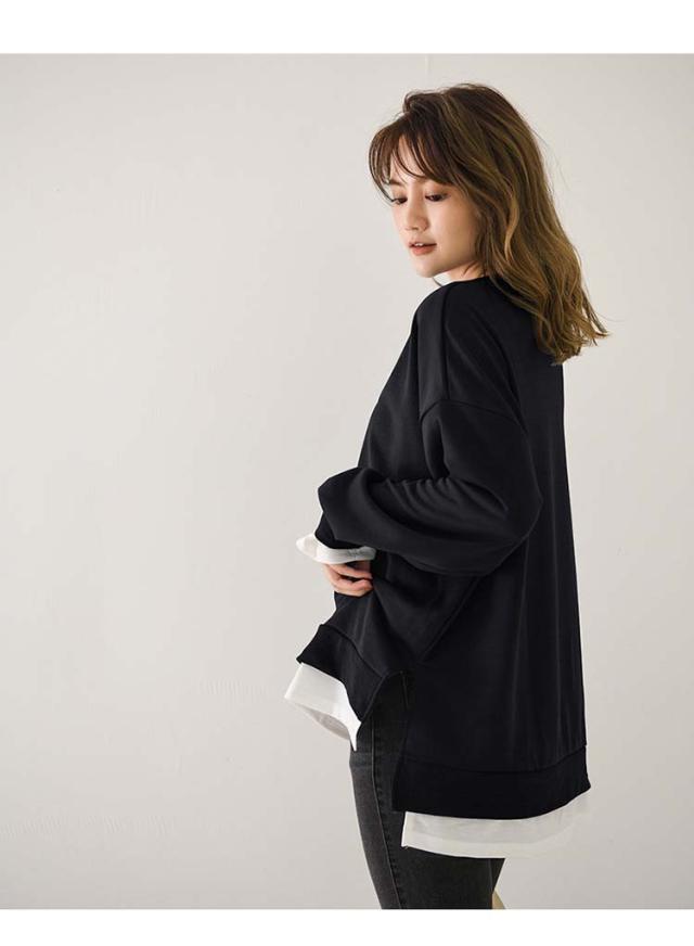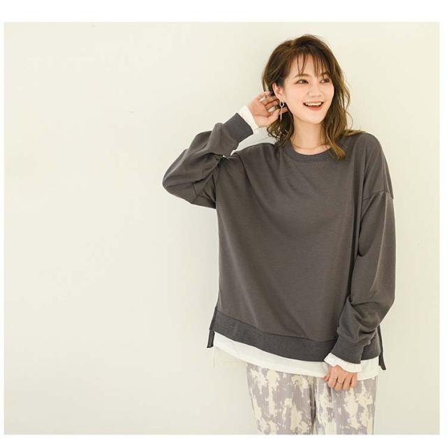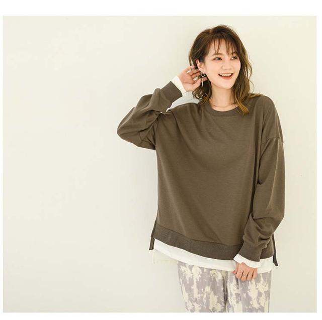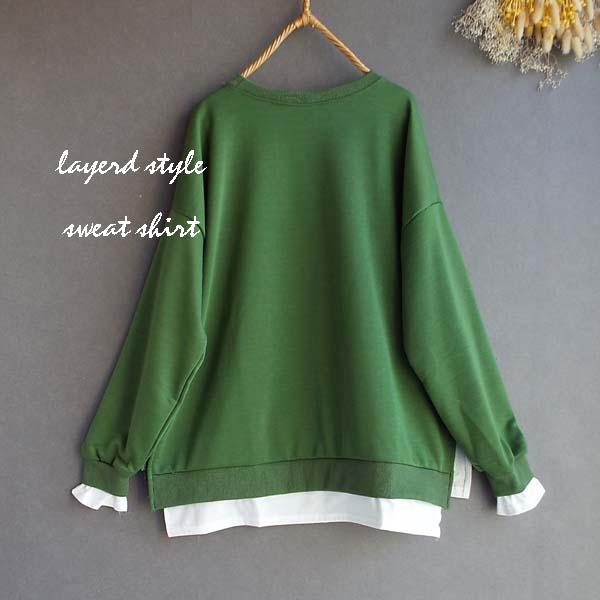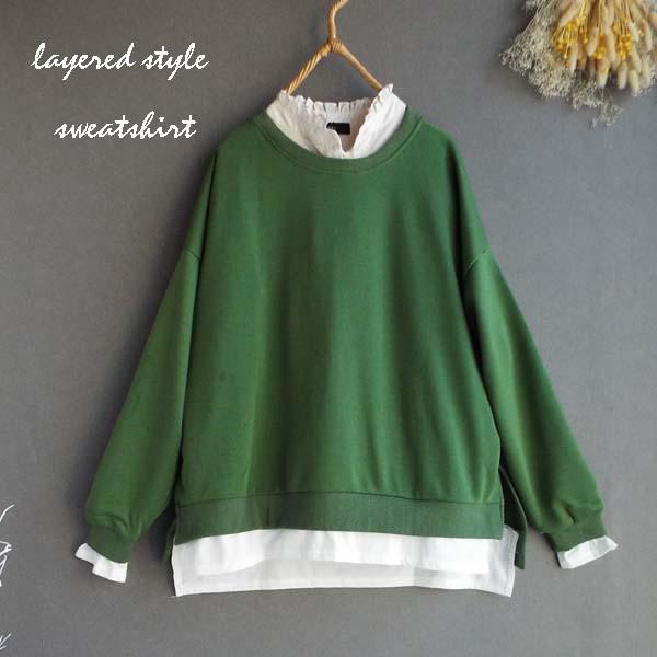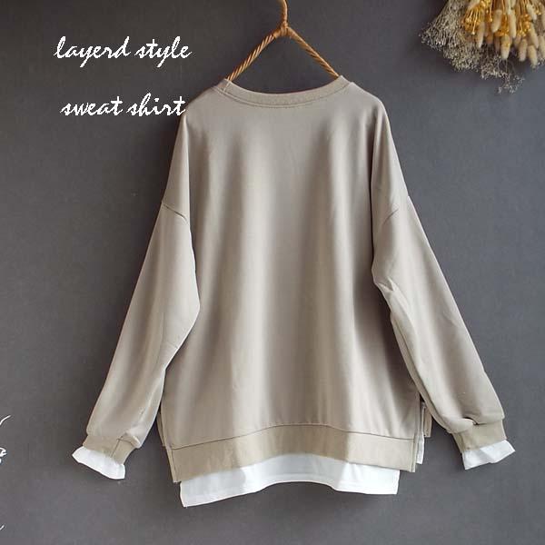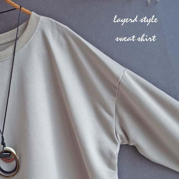 チュニック レイヤード風 裏毛 トレーナー スウェット 春夏 40代 50代 体型カバー s3657
