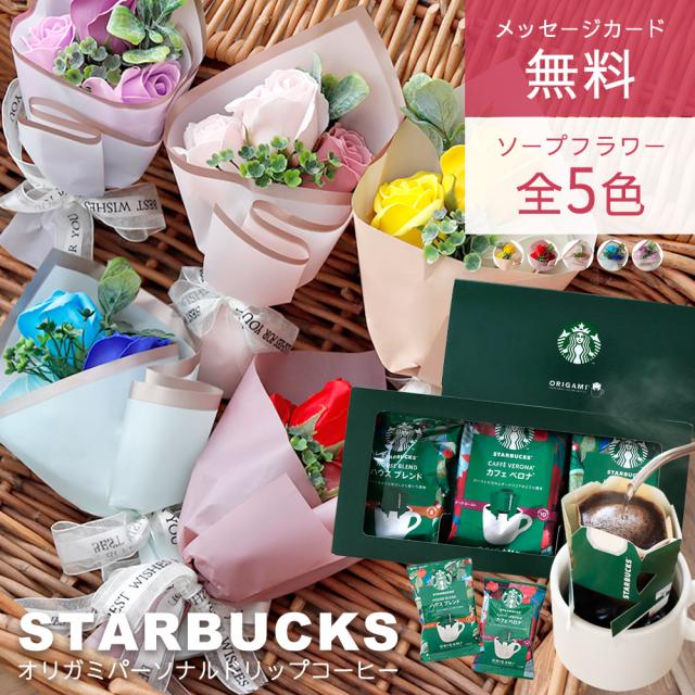 ソープフラワー お供え お盆 夏ギフト ソープフラワーギフト 造花 スターバックス ギフト スタバ ドリップ コーヒー ソープフラワー ミニブーケ セット プレゼント 花 花束 贈り物 誕生日 結婚祝い 内祝い 還暦祝い おしゃれ 珈琲 コーヒーギフト 女性 男性 送料無料
