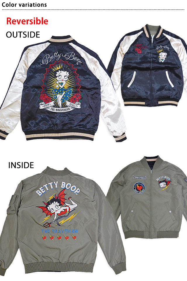 BR×BETTYコラボ サテン×ナイロンツイルリバーシブルスカジャン The BRAVE-MAN BBB-2453 ブレイブマン ベティーちゃん