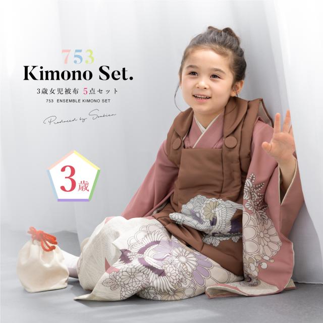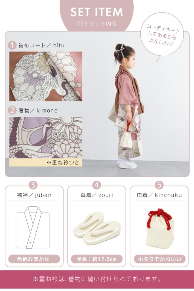 七五三 着物 3歳 レトロ 被布 販売 女の子 三歳 着物セット 被布コート 襦袢 草履 セット かわいい おしゃれ 鶴 茶 ピンク 花柄 和装 女児 子供 送料無料
