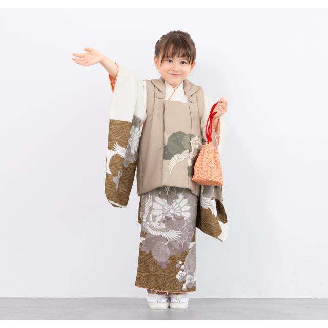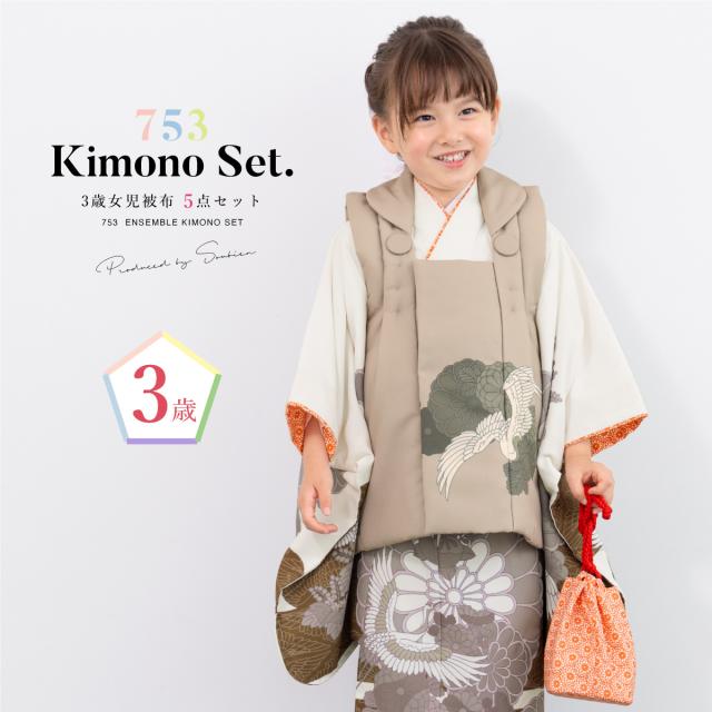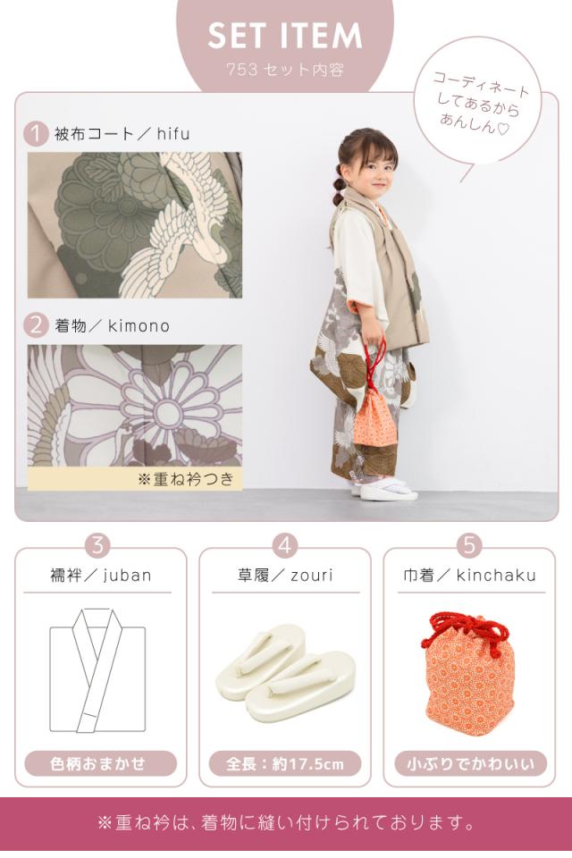七五三 着物 3歳 レトロ 被布 販売 女の子 三歳 着物セット 被布コート 襦袢 草履 セット かわいい おしゃれ 鶴 茶 白 花柄 和装 女児 子供 送料無料