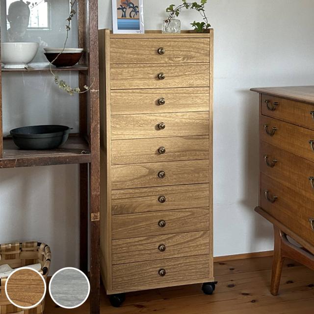 総桐チェスト 幅40cm 浅10段 キャスター付 A4収納 日本製 ( チェスト 総桐 多段チェスト 天然木 A4 桐 木製 引き出し キャスター 十段 収納 家具 ナチュラル グレー )