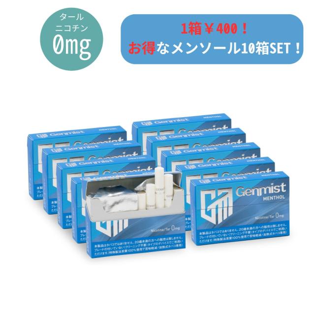 Genmist(ジェンミスト) メンソール10箱セット アイコス アイコスイルマ対応 IQOS IQOS互換機 ニコチンゼロ タールゼロ 電子タバコ 加熱式タバコ 禁煙グッズ 減煙 ニコチンなし ノンニコチン ノンタール ヒートスティック 1箱 20本