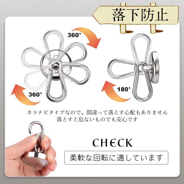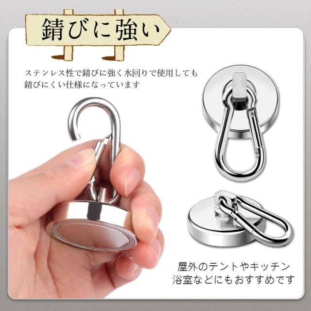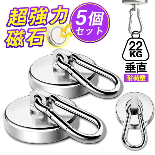 カラビナ マグネット 5個セット フック 強力 磁石 カラビナ 超強力 磁石フック ネオジム 冷蔵庫 倉庫 固定 錆びにくい 耐荷