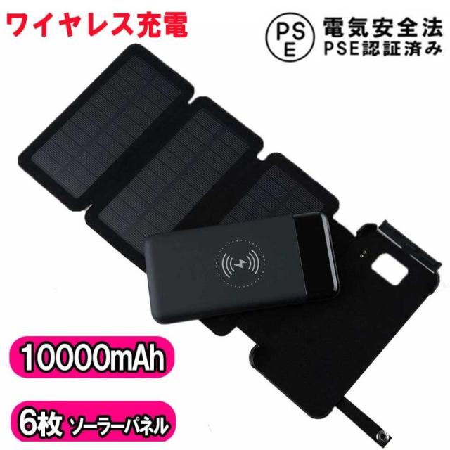 【送料無料】ソーラーモバイルバッテリー ソーラーワイヤレス充電器 折りたたみ式 6枚パネル 10000mAh 大容量 LEDライト付き 分離可能 携帯充電器 持ち運び便利 耐衝撃 地震/災害/旅行/出張/アウトドア活動など