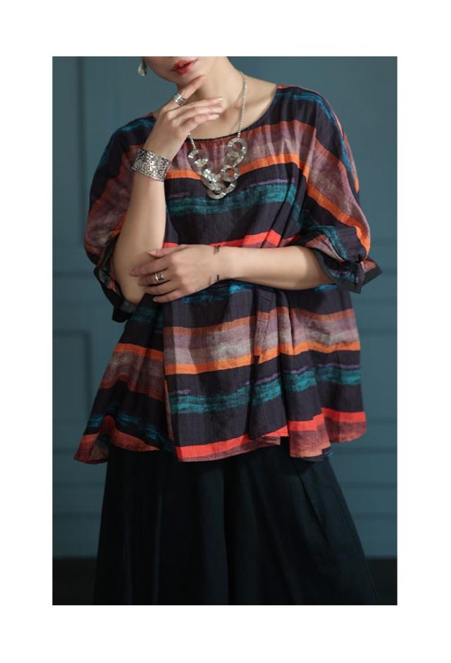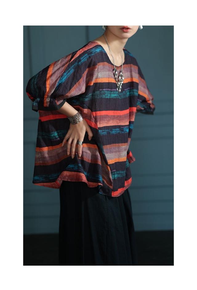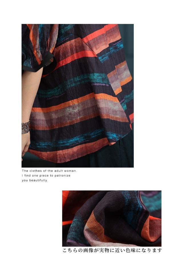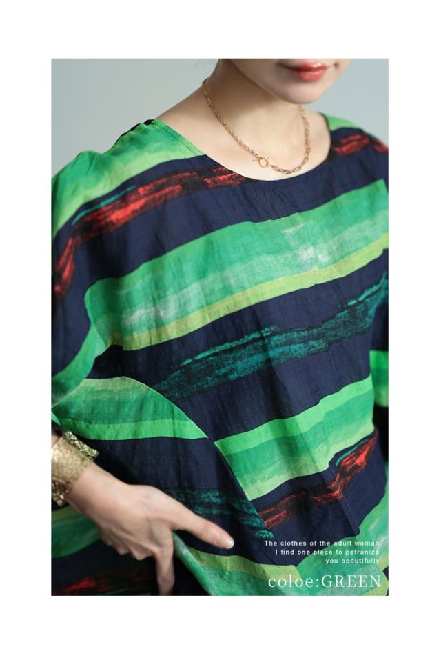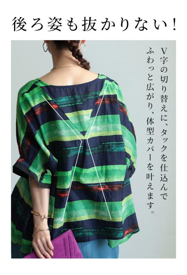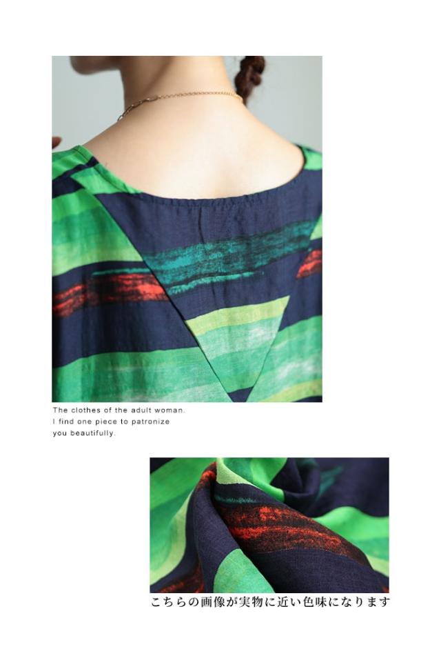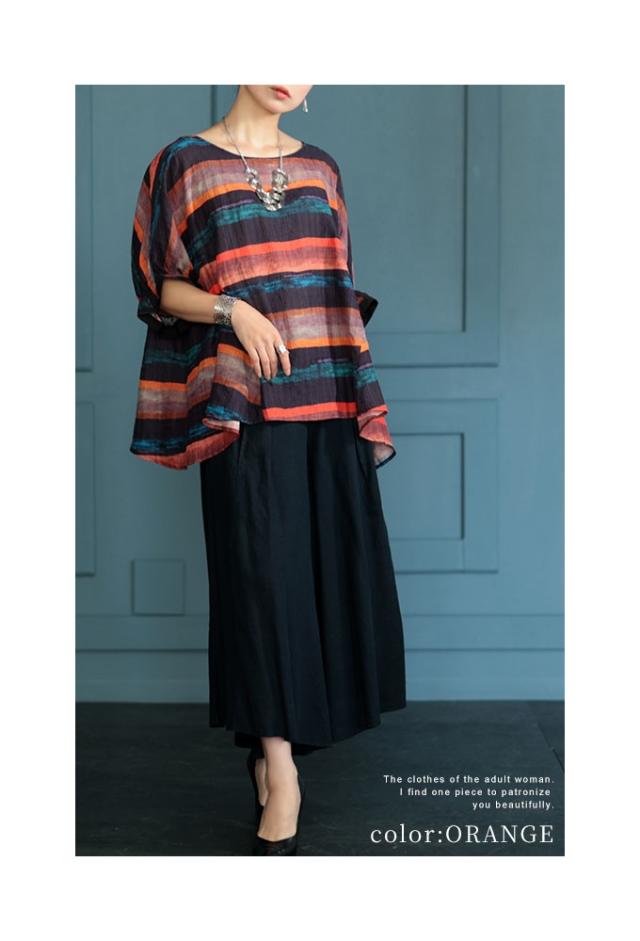 特徴: ボーダー 水彩風 手書き風 フレア 変形 キャンディースリーブ 配色 バイカラー コットン 綿 タック