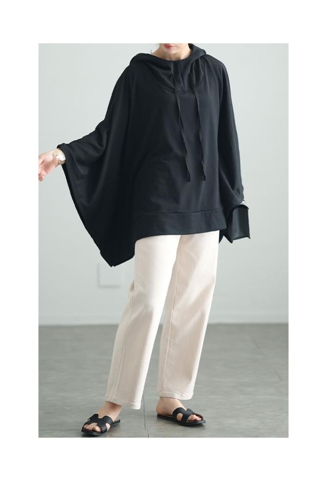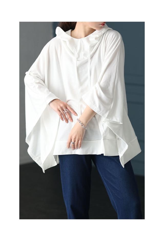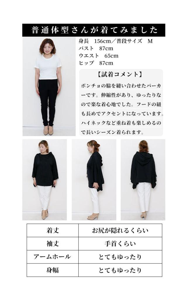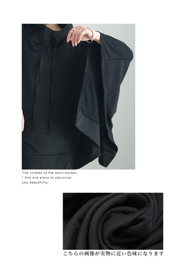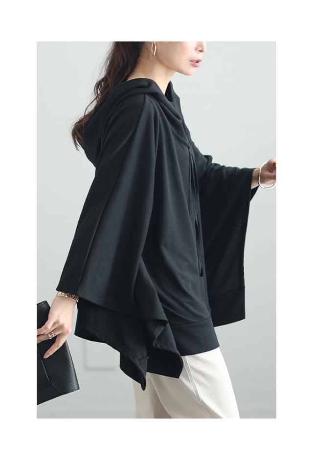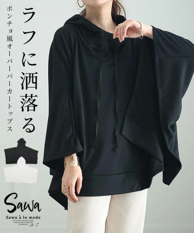 春新作 一瞬でモードな着こなしポンチョ風パーカー レディース ファッション チュニック トップス パーカー プルオーバー フード 変形 ポンチョ 無地 黒 白 30代 40代 50代 60代 サワアラモード sawaalamode otona 大人 cawaii 可愛い 洋服 かわいい服 sawa-9613