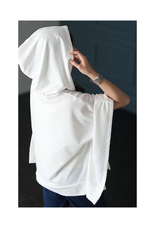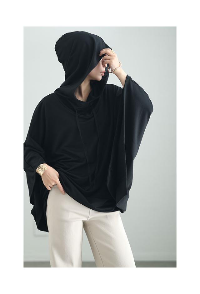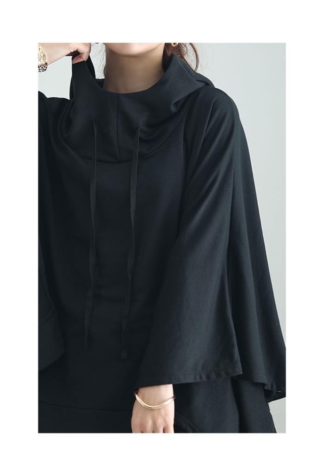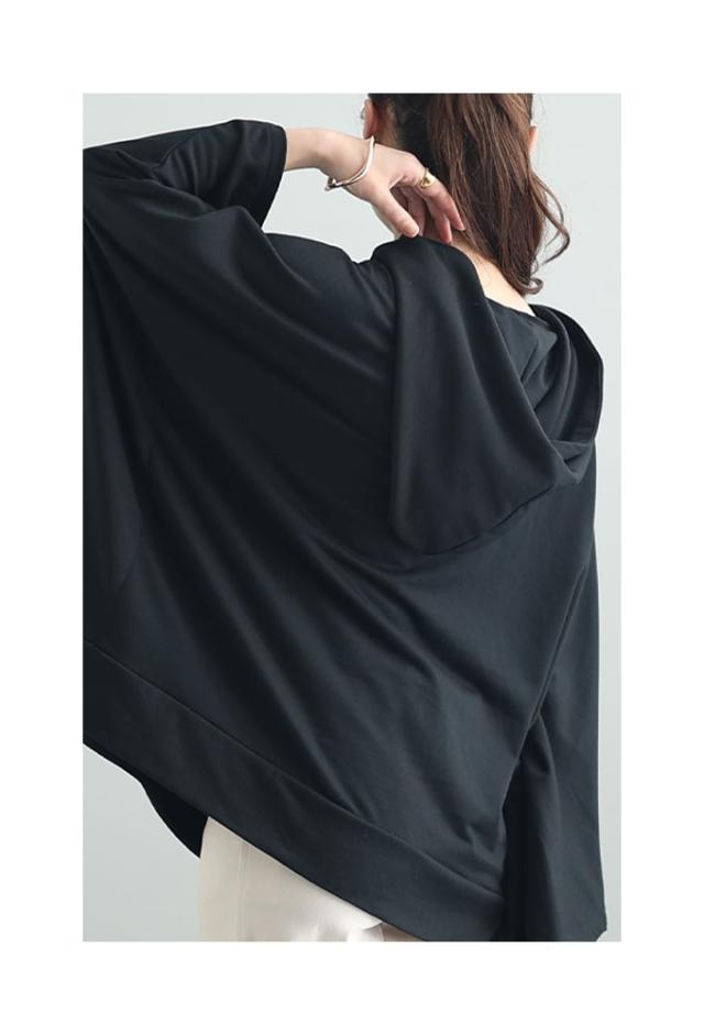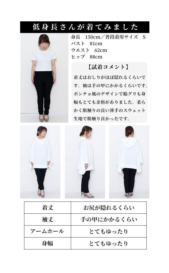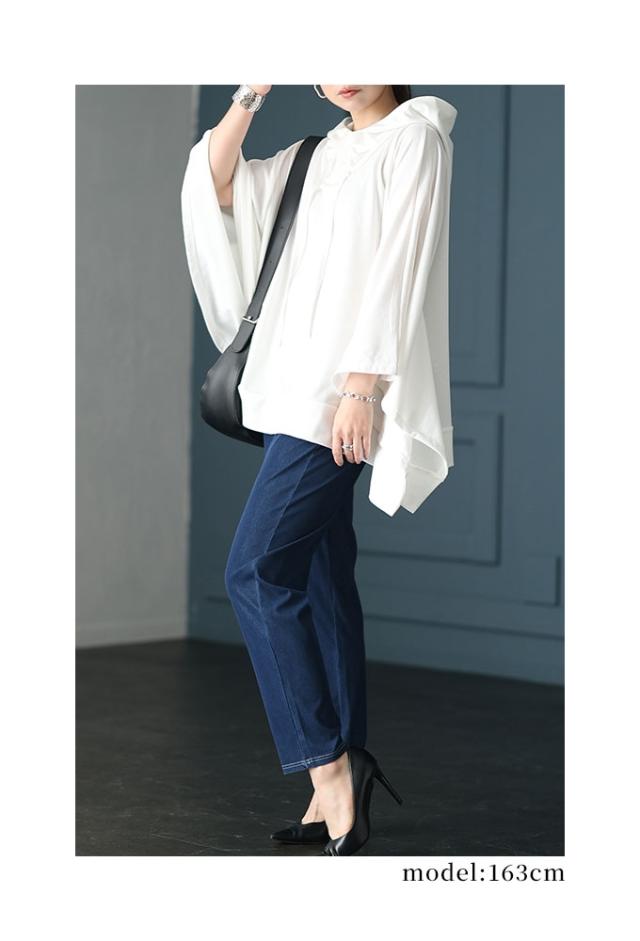 春新作 一瞬でモードな着こなしポンチョ風パーカー レディース ファッション チュニック トップス パーカー プルオーバー フード 変形 ポンチョ 無地 黒 白 30代 40代 50代 60代 サワアラモード sawaalamode otona 大人 cawaii 可愛い 洋服 かわいい服 sawa-9613