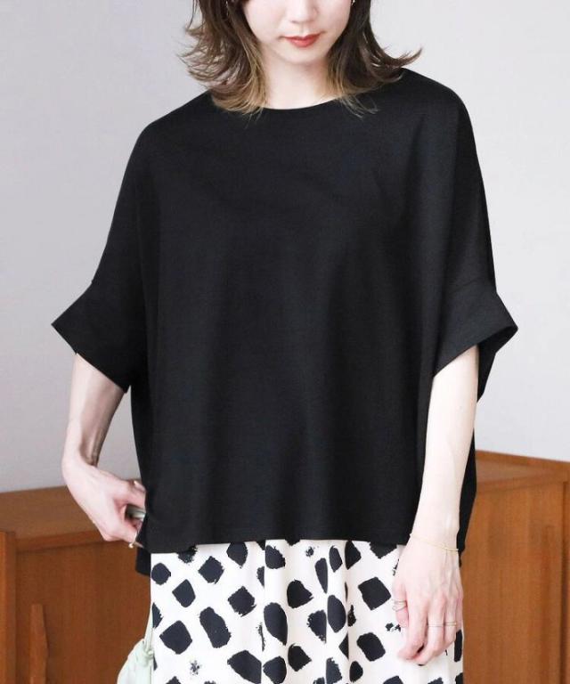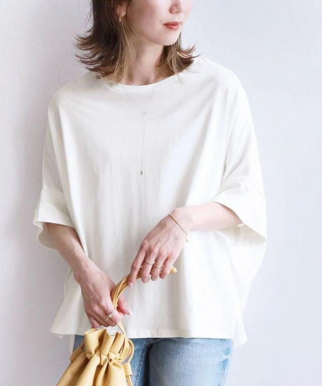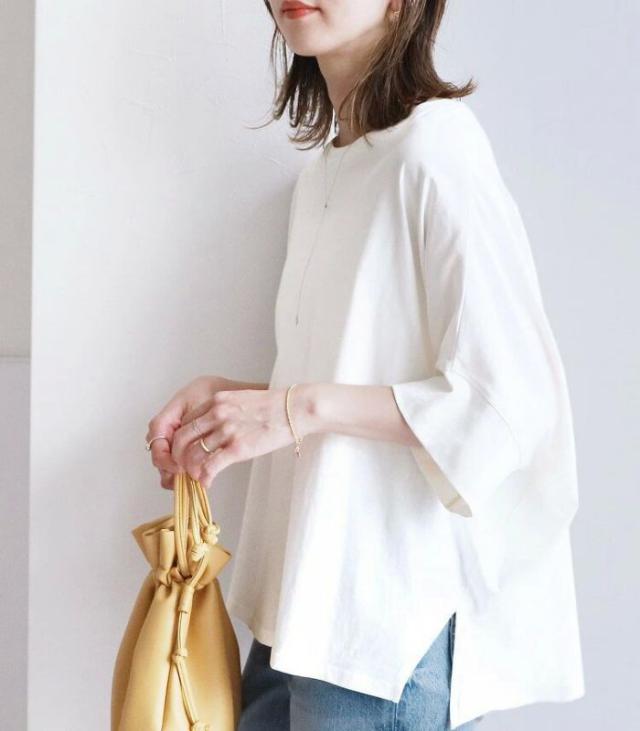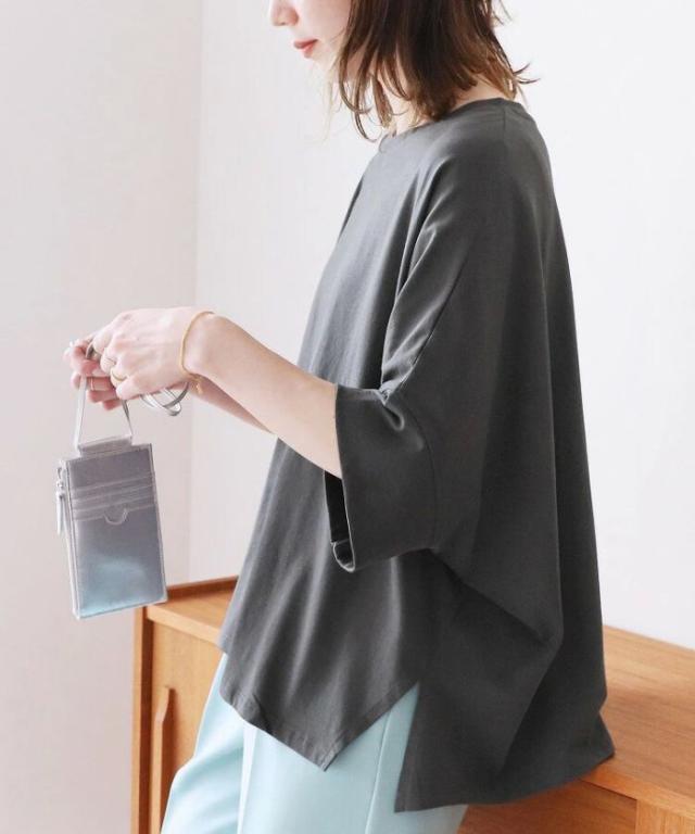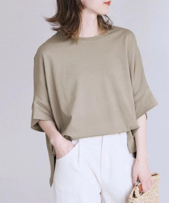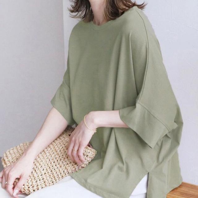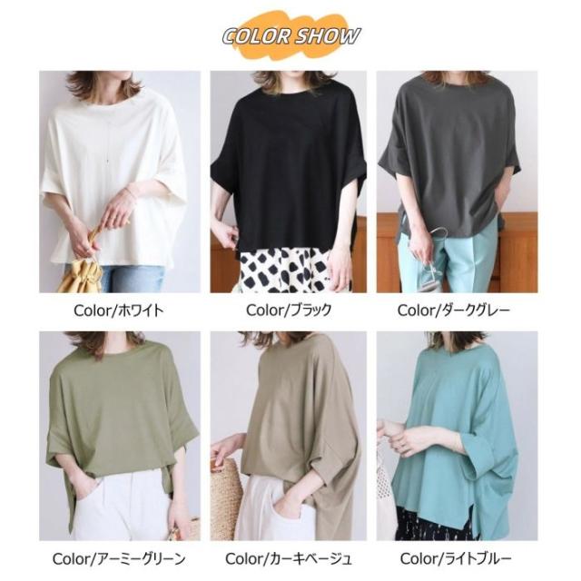 カットソー レディース tシャツ 綿 スリット トップス シルエット 五分袖 ドルマンスリーブ Tシャツ ゆったり ラウンドネック 春夏