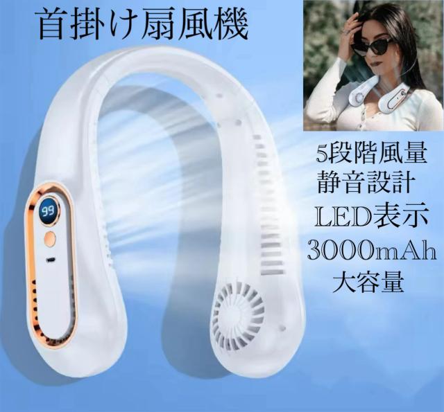 3 首掛け扇風機 ネッククーラー 携帯扇風機 冷却クーラー 瞬間冷却 5段階風量調節 ネックファン 熱中症対策 3000mAh 大容量 バッテリー 強風 軽量 首かけ