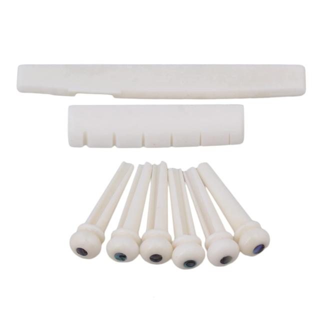 ◆商品名:Yibuy ホワイト 骨ブリッジピン アコースティックギター用 セット ナット&サドル&ピン