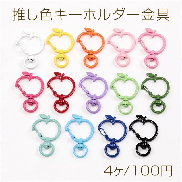 推し色キーホルダー金具 りんご型 回転カン付き 手作り推し活 カラーキーホルダー金具 ストラップ金具 約25×37mm (4ヶ)