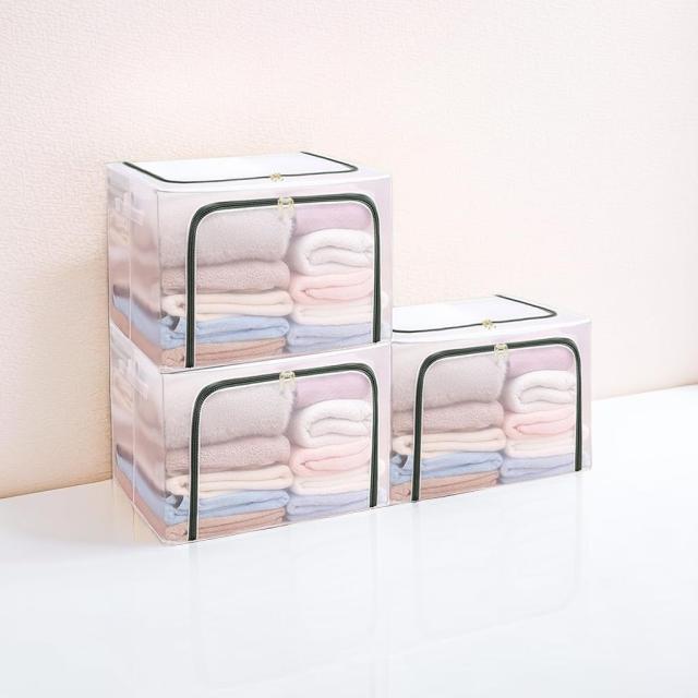 3個 【3個入】 衣類収納ボックス 折り畳み 窓付き収納ボックス 大容量 衣類ケース 収納ボックス 透明収納ボックス 蓋付き収納ボックス 取っ手付き 透明素材 PVC 鉄骨入り 防塵 防湿 防虫 防カビ 無臭 省スペース 積み重ね可能 ステンレス製ブラケット 多機能収納ケース 書類