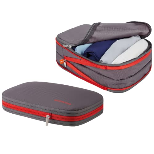 2個セット(M+M)_グレーレッド Bee Nesting トラベルポーチ 旅行用圧縮袋 圧縮バッグ 9L 衣類収納 ファスナー 拡張可能 ペース節約 2 つの収納コンパートメント 軽量 出張 旅行 便利グッズ (グレー・レッド,2点セット)