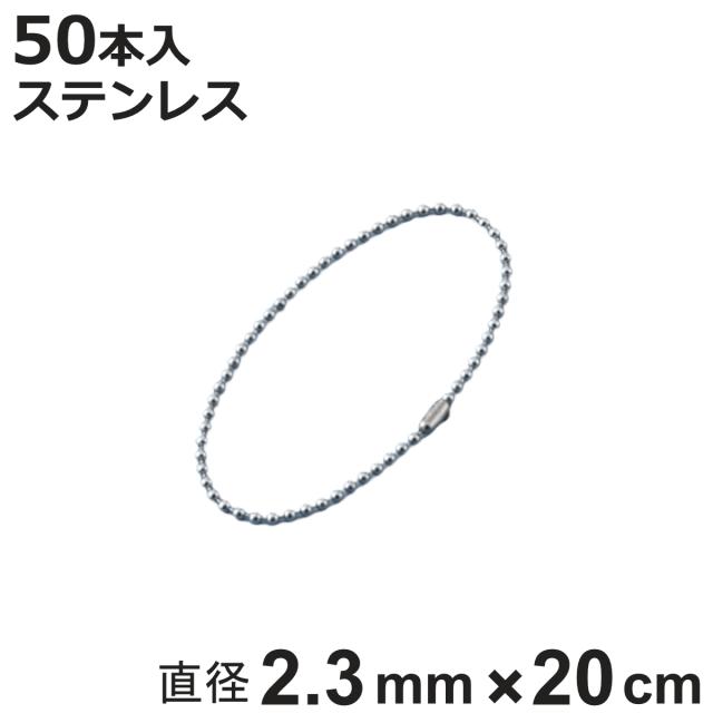 ボールチェーン 玉鎖 50本入 直径2.3mm 20cm ステンレス製 ( チェーン 取り付け 部品 金具 鎖 ストラップ キーホルダー コネクター付き バルブ表示 配管識別 設置 取り付け金具 ステンレス 日本製 )