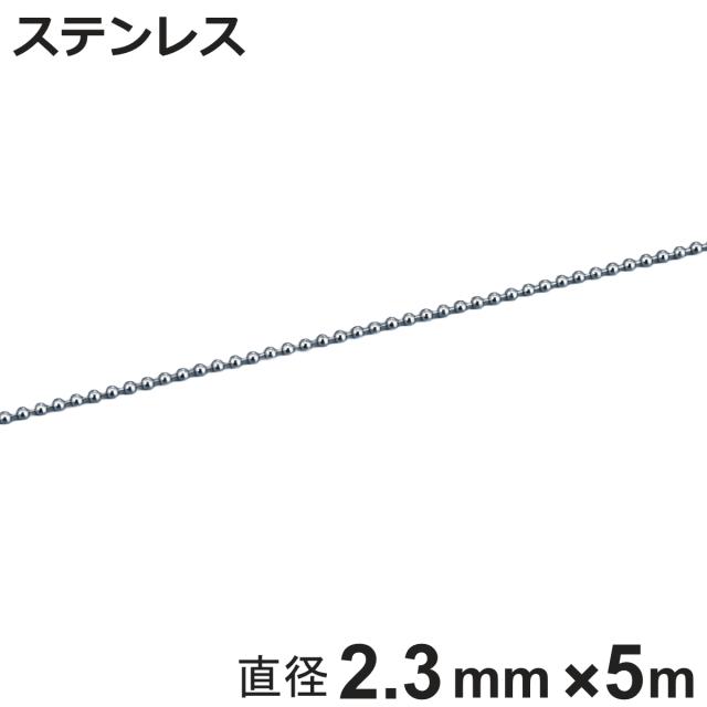ボールチェーン 玉鎖 直径2.3mm 5m ステンレス製 ( チェーン 取り付け 部品 金具 鎖 ストラップ キーホルダー バルブ表示 配管識別 設置 取り付け金具 ステンレス 日本製 )