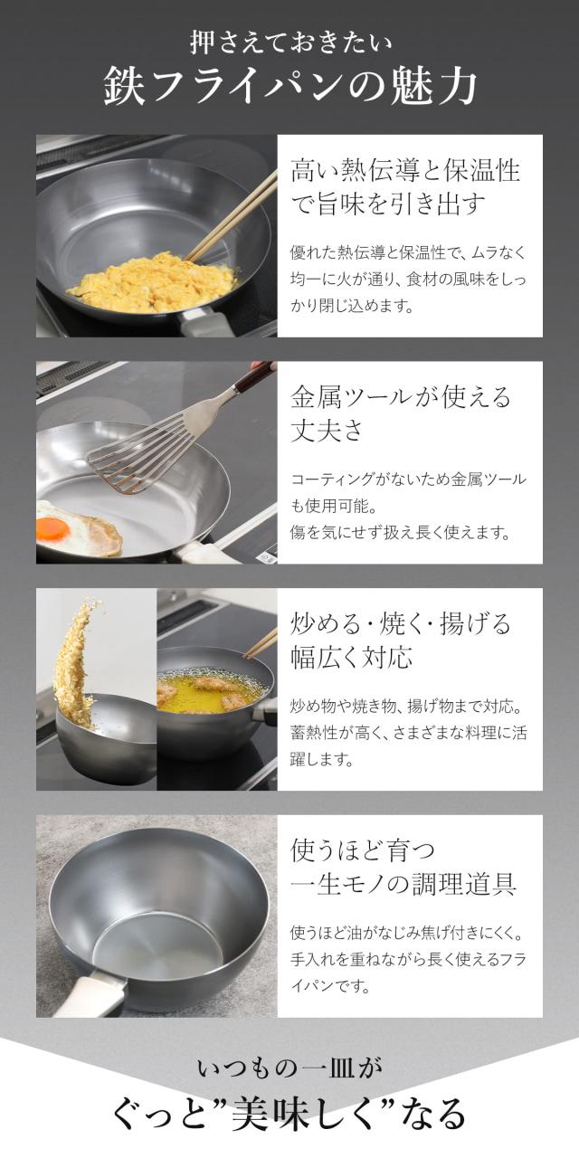 鉄フライパン 20cm 深型 IH対応 「F.」 藤田金属×近畿大学 日本製 ( ガス火対応 鉄製フライパン 片手鍋 炒め鍋 フライパン 20センチ 鉄のフライパン 鉄製 軽い 金属ヘラOK いため鍋 揚げ鍋 深型フライパン 調理器具 )