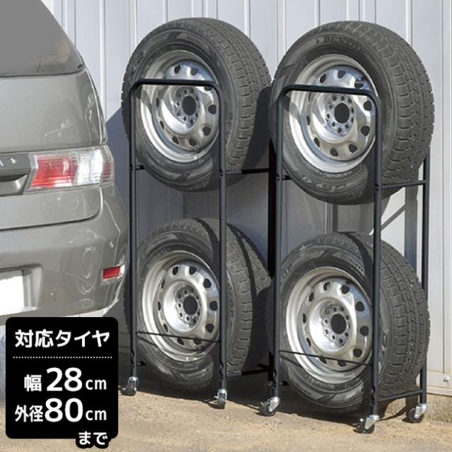 薄型タイヤラック2個組 幅28cm カバーなし(足立製作所 タイヤラック 4本 SUV RV 用 タイヤ収納 乗用車 冬タイヤ スタットレス タイヤ 保管 収納 片付け ガレージ カーポート 自宅 隙間 スリム)【R】 メーカー直送