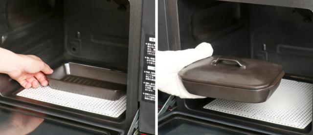 また、油などが庫内に飛び散るのも防いでくれるので、調理後の片付けが簡単です。もちろん器のみでの調理も可能です。