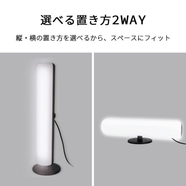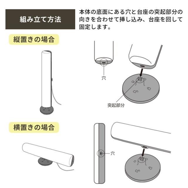 台座を組み替えて縦置きと横置きを簡単に変更できるので、これ一本でいろいろな場所でライトとしてご使用いただけます。