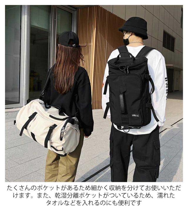 | 旅行やスポーツ、ジムなどにおすすめの3WAY仕様ボストンバッグ ナイロン素材を採用する、水と汚れから強力にガード。雨や泥、土が気になるアウトドアシーンで嬉しいポイントです。 背負ったり、肩にかけたり、手で持ったりできる、リュック、ショルダーバッグ、ボストンバッグの3WAY仕様。 たくさんのポケットがあるため細かく収納を分けてお使いいただけます。また、乾湿分離ポケットがついているため、濡れたタオルなどを入れるのにも便利です 場所や重さで自由持ち方を選べるため、楽に荷物が運べます スポーツ、旅行、キャンプ、登山、防災バッグとしても大活躍。 男性にも女性にもにも使いやすいユニセックスデザインのもうれしいポイント。 | |